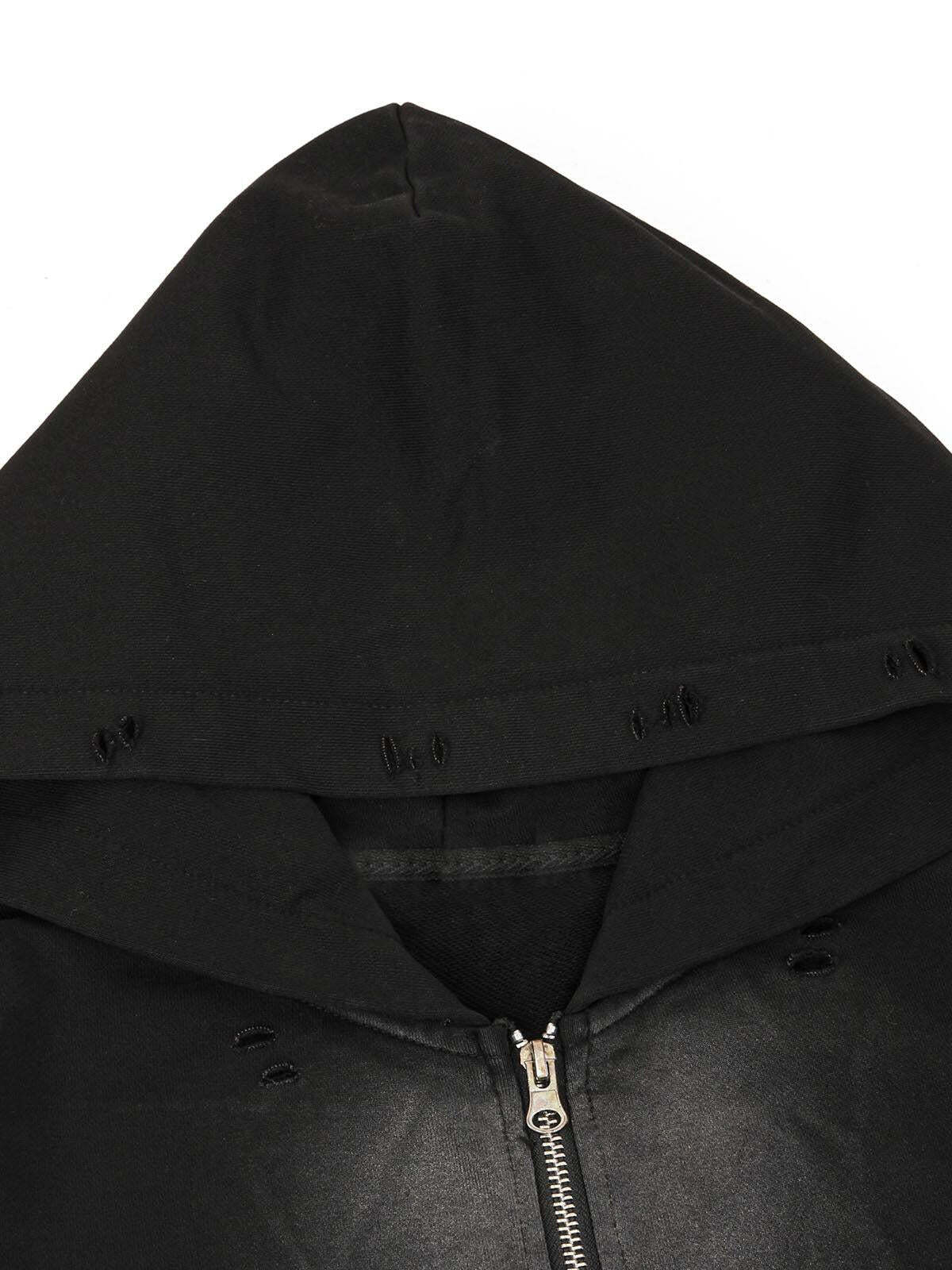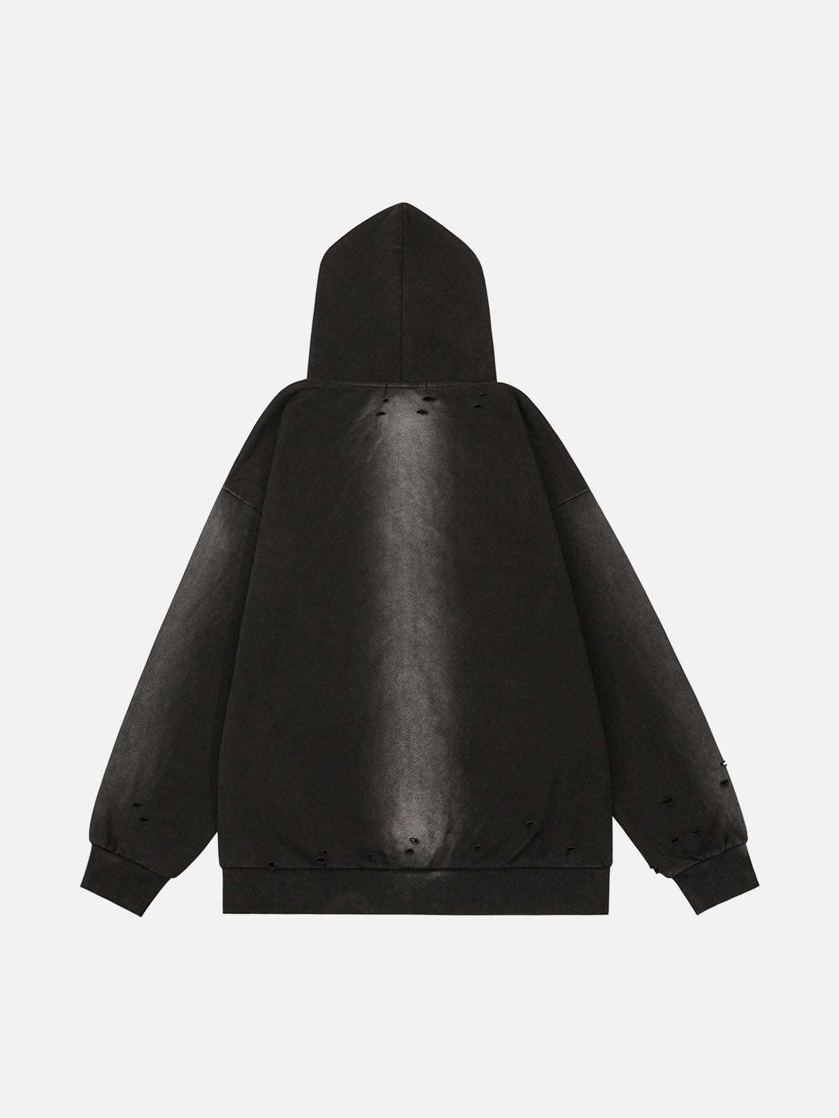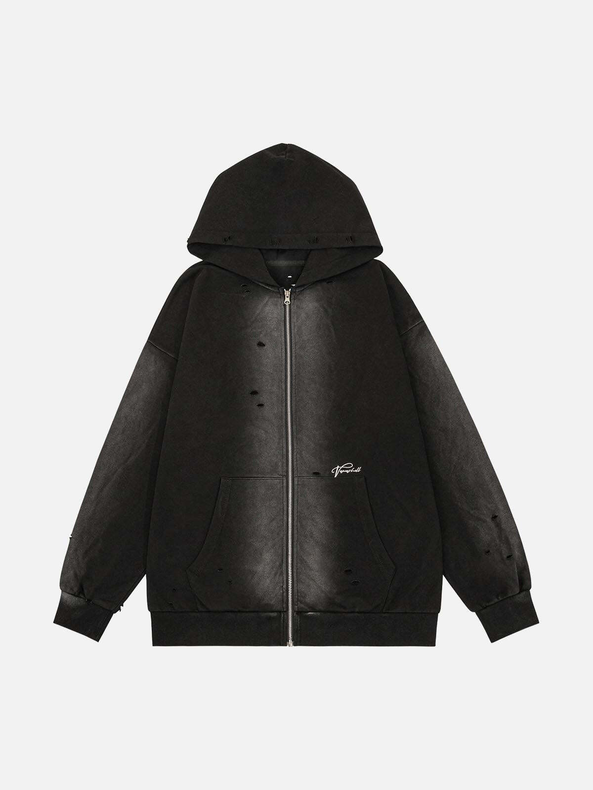 Embrace the raw energy of streetwear fashion with this edgy black hoodie that redefines casual cool. Its distressed details add an authentic, lived-in vibe, perfect for those who appreciate subtle rebellion. The hoodie features a sleek zip-up design and a hood that brings both comfort and attitude, making it an essential for layering. Available in versatile sizes from M to 2XL, it’s designed to fit effortlessly into any wardrobe. Pair it with your favorite jeans for an urban look or layer it over a graphic tee for effortless outfit inspo. Grab yours now and redefine your street style.