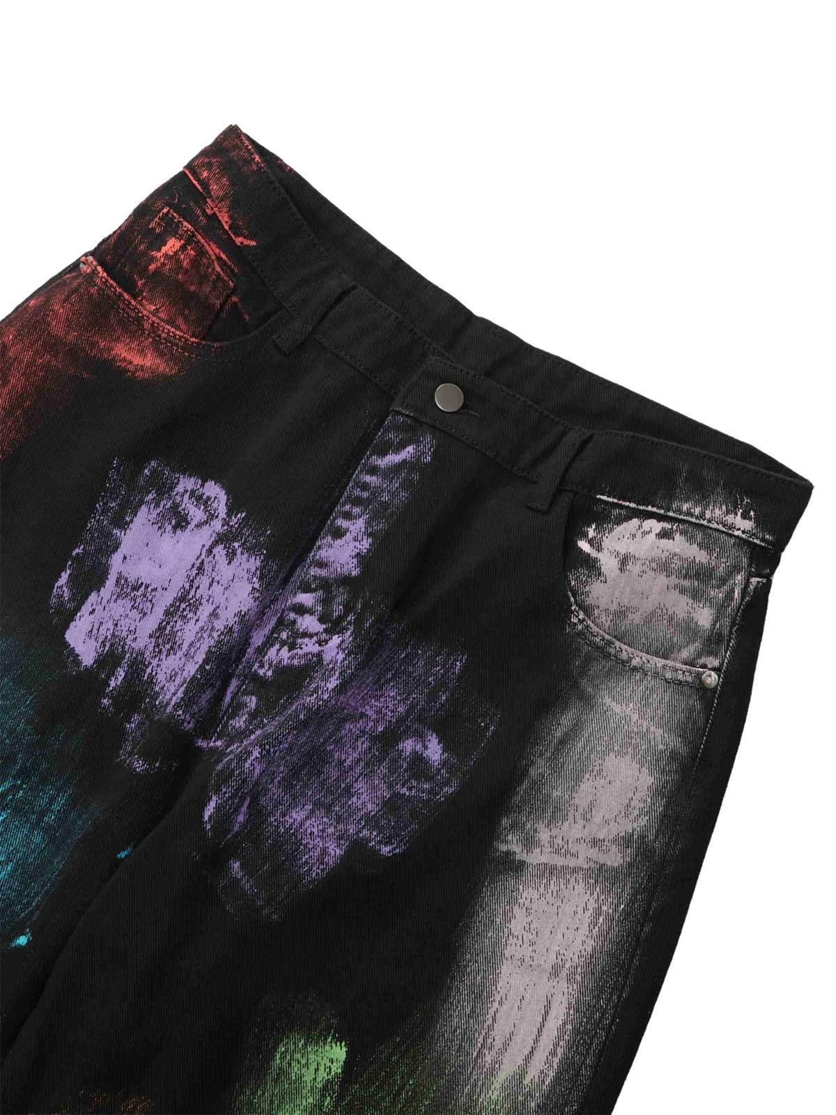 Turn heads with these bold, abstract-patterned pants that redefine streetwear fashion with their electric mix of purple, teal, and rust, all set against a deep black canvas. The relaxed fit ensures comfort in sizes M, L, and XL, making them perfect for those who seek both style and ease. The textured fabric adds a unique, tactile dimension, making these pants a standout piece in any y2k-inspired outfit. Pair them with a simple top to let your pants do the talking, and step into the urban scene with confidence.