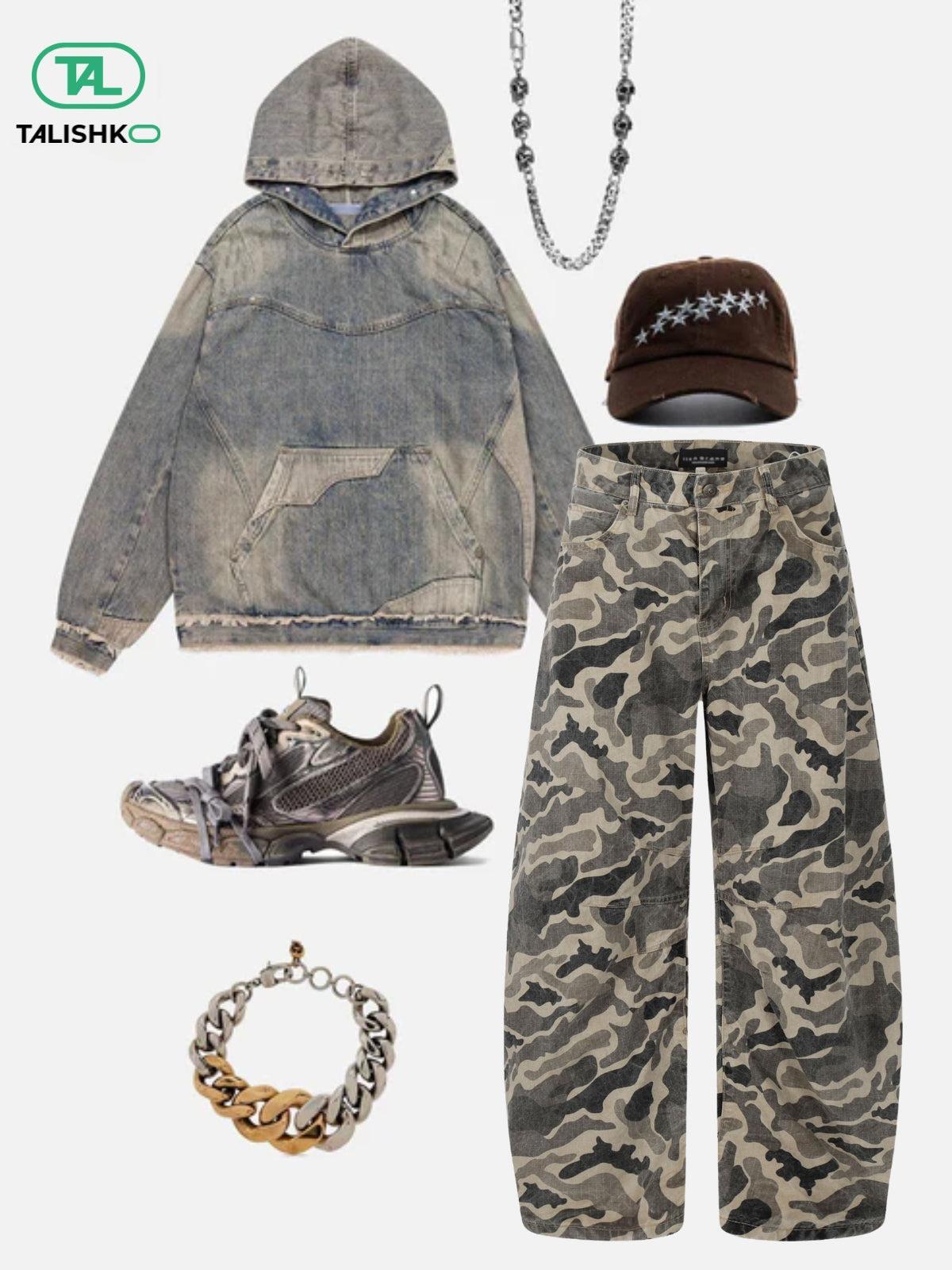Embrace the urban jungle with these versatile camo pants that redefine streetwear fashion. The rugged green camouflage pattern melds seamlessly with your edgy style, while the relaxed fit ensures comfort and mobility for any adventure. Crafted with a durable texture, these pants are perfect for layering with your favorite oversized tops or distressed denim jackets, creating endless outfit ideas. Available in one size that suits a wide range of body types, they’re your go-to for a look that’s effortlessly cool. Grab yours and elevate your streetwear game today.