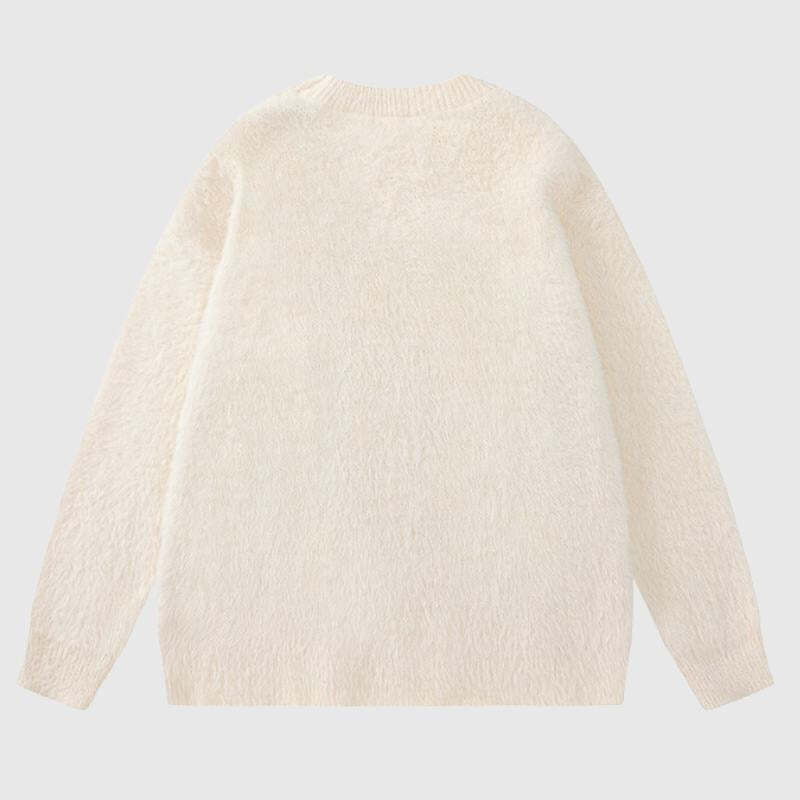 Features: Pullover, round neck, long sleeves, cartoon print design, loose fit, jacquard weaving, couple wear.