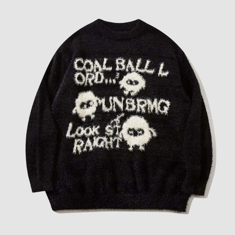 Features: Pullover, crew neck, long sleeve, cartoon doll embroidered design, flocking, relaxed fit, jacquard weave, couple outfits.