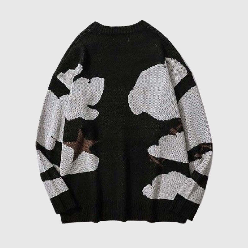 Features: Pullover, crew neck, long sleeve, cartoon face printed design, relaxed fit, jacquard weave, couple outfits.