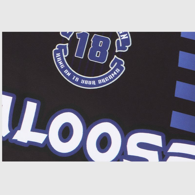 Features: Tee, v-neck, long sleeves, color contrast, letter printed, racing style, loose fit, soft and breathable, unisex.