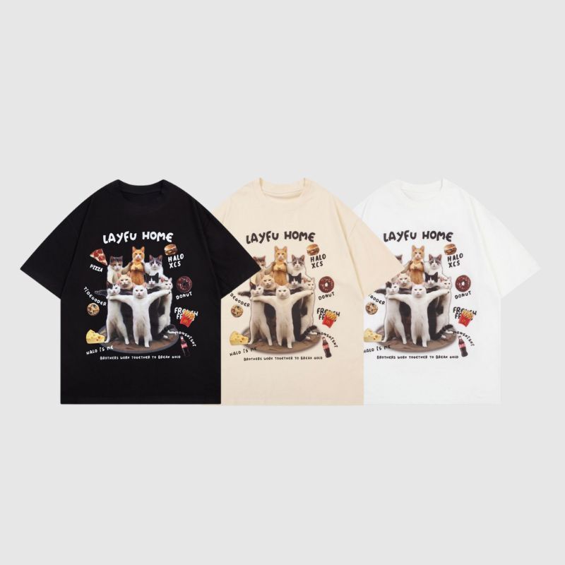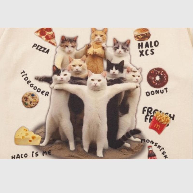 Features: Tee, crew neck, short sleeves, creative spoof cat print design, loose fit, soft and breathable, unisex.