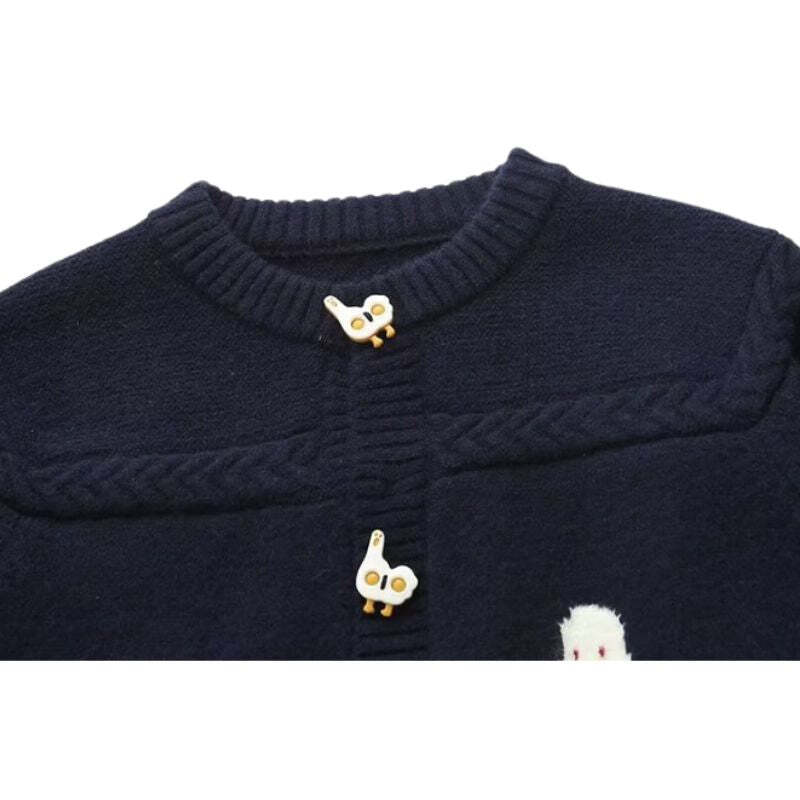This cozy Cute Cartoon White Goose Sweater Cardigan has an adorable cartoon design and is made from a soft and comfortable knit fabric. Perfect for those chilly days, it provides warmth and a stylish look to complete your ensemble.