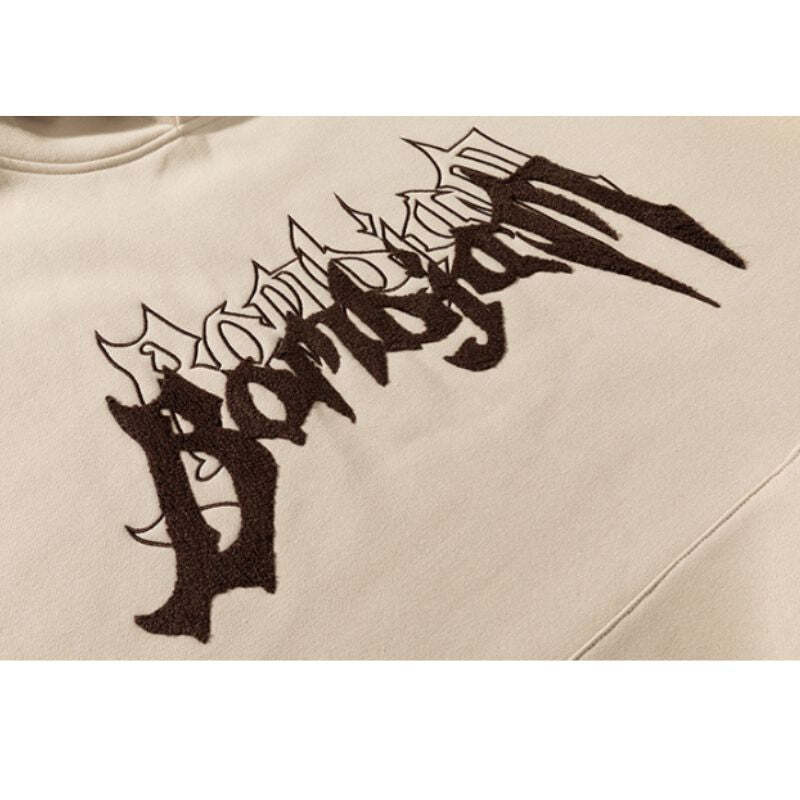 - Classic American street style with bold towel embroidery lettering