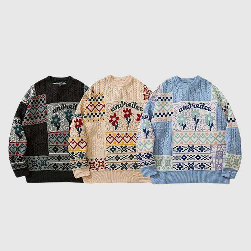 Be the first to review “Style Core Aesthetics, New Style Trends Flower Pattern Stitching Knit Pullover” Cancel reply