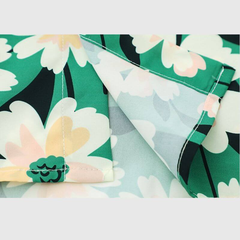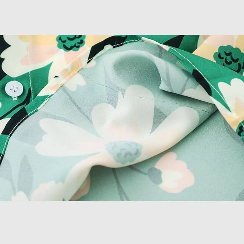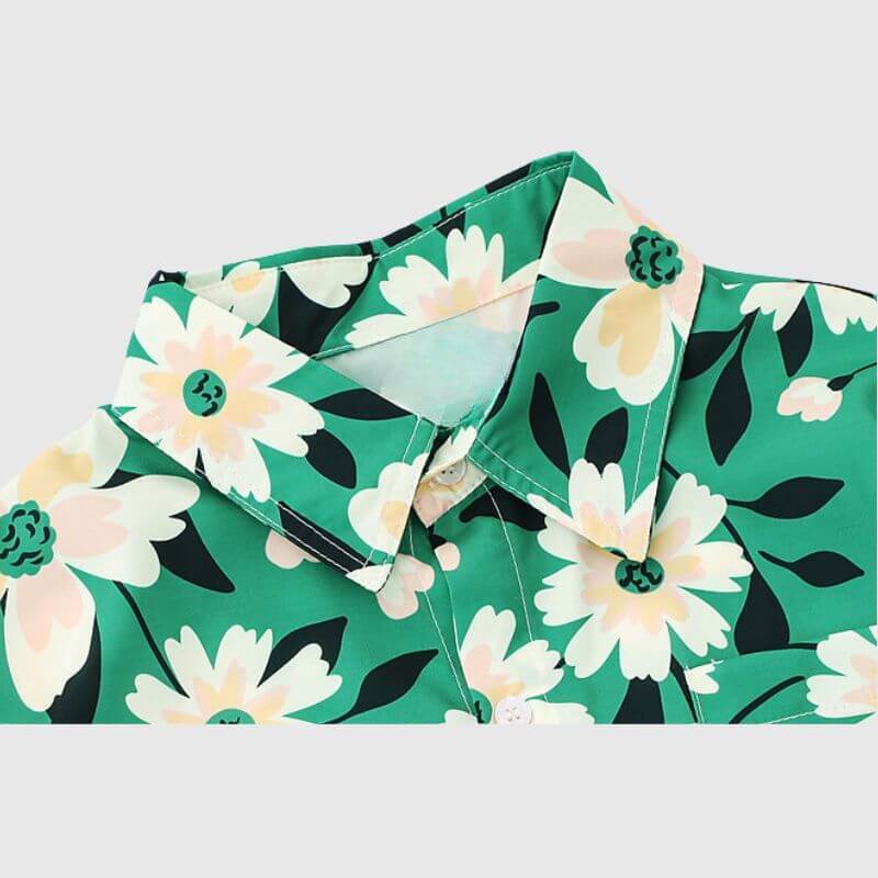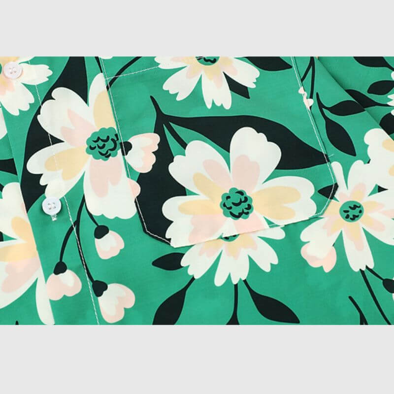 Features: Shirt, short sleeves, green floral print design, loose fit, soft and breathable, unisex.
