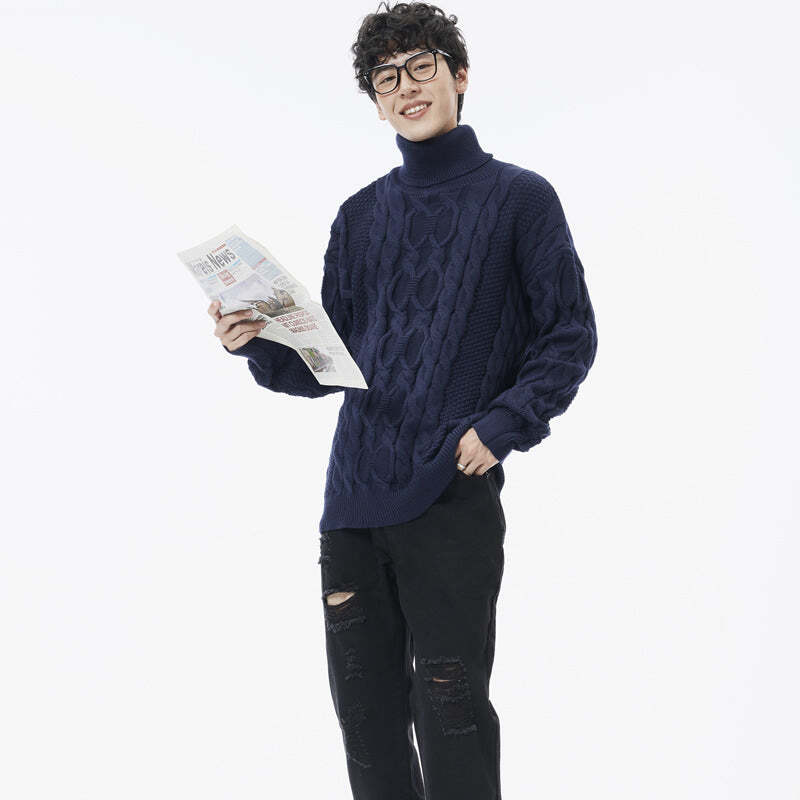 Features: Pullover, crew neck, long sleeve, high neck, jacquard patchwork design, solid color, unisex, relaxed fit, jacquard weave, couple outfits.