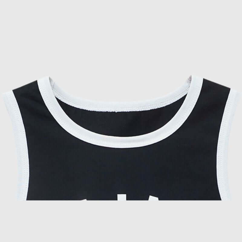 - Letter print, color contrast, crew neck, sleeveless, slim fit
