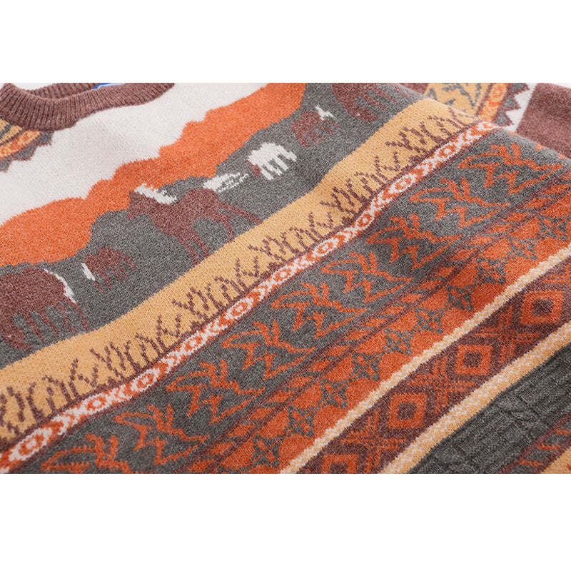 Features: Pullover, crew neck, long sleeve, color contrast design, relaxed fit, jacquard weave, couple outfits.