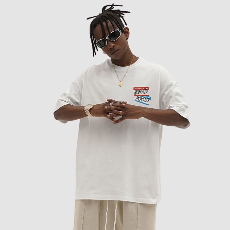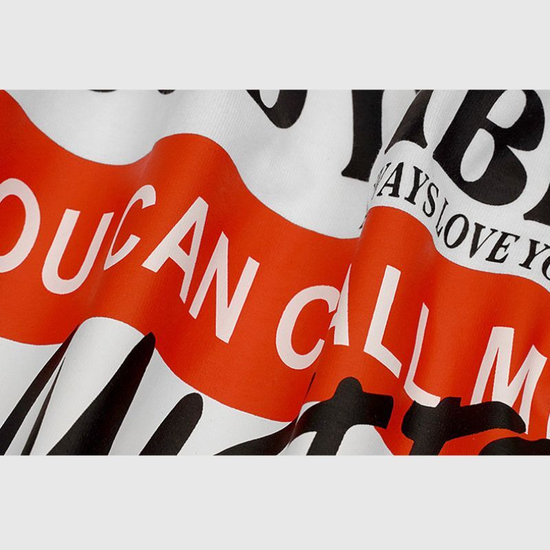 Features: Tee, crew neck, short sleeves, color contrast, label printed design, loose fit, soft and breathable, unisex.