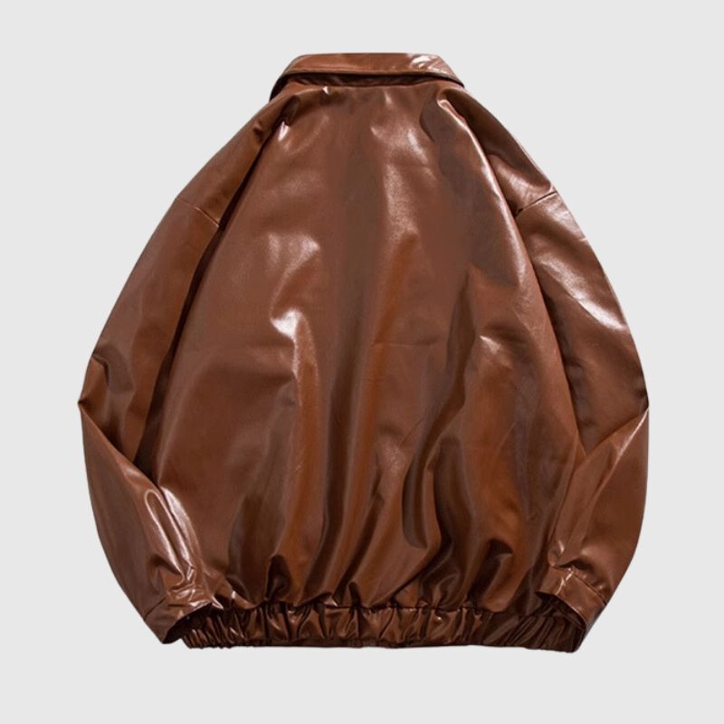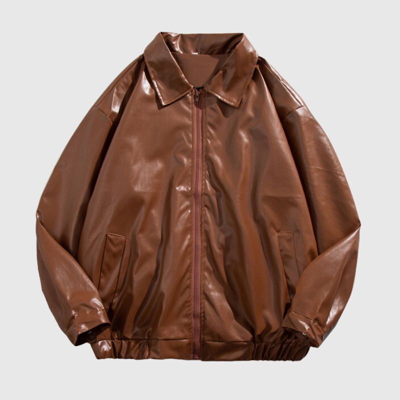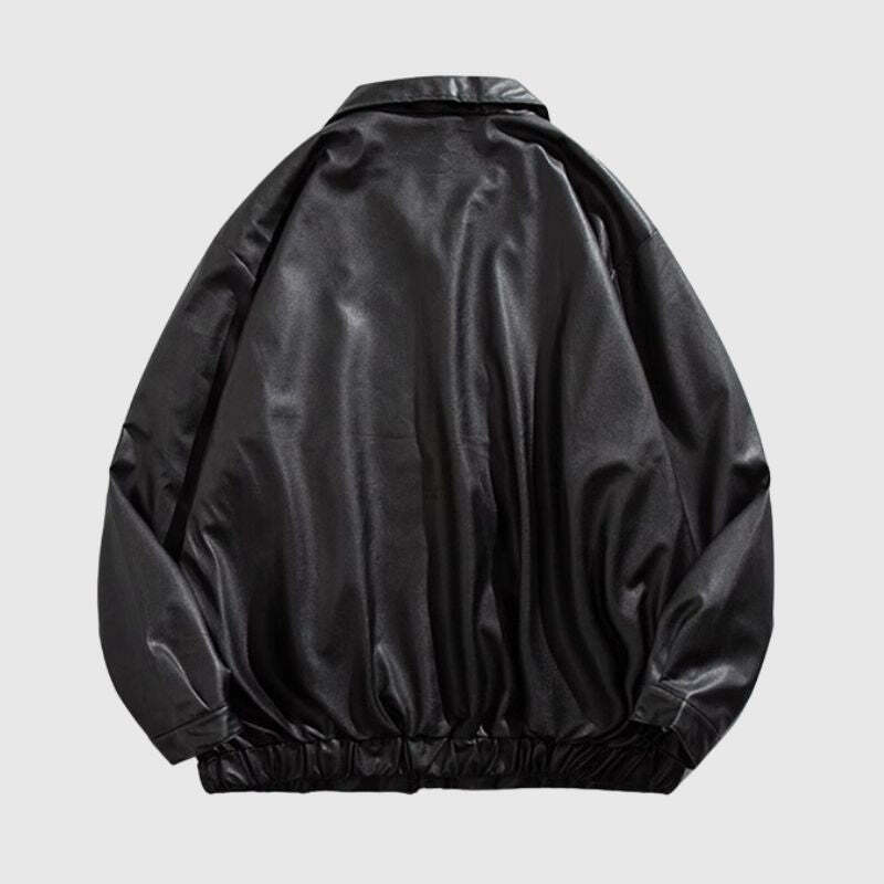 Features:Jacket, lapel, long sleeves, pu leather solid color design, loose fit, soft and breathable, unisex, couple wear.