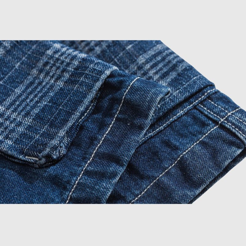 Features: Jorts, vintage, plaid pocket, side pocket, patchwork design, straight-leg, loose, relaxed fit, unisex, couple outfits, belt included.