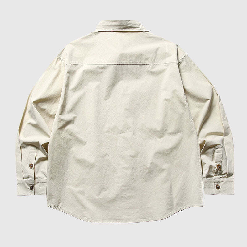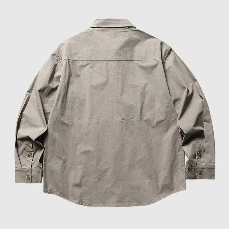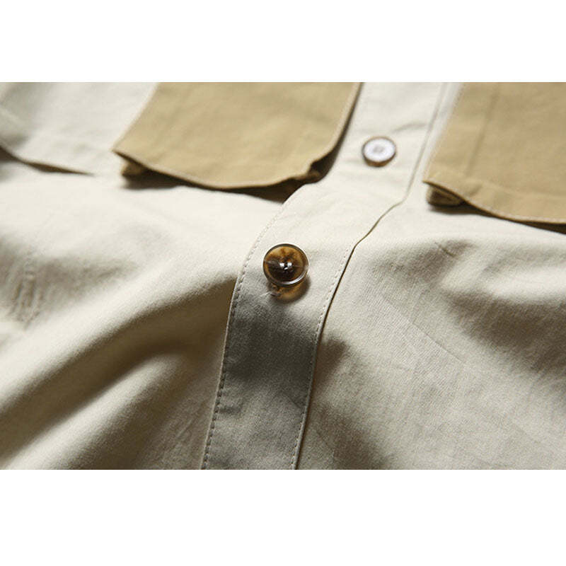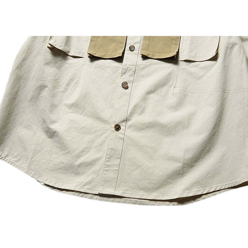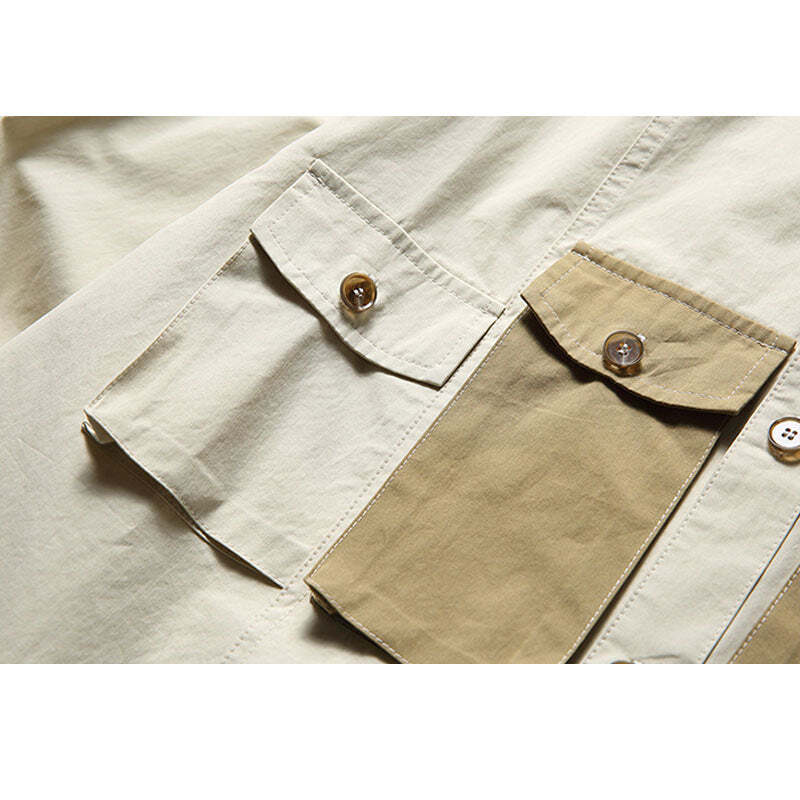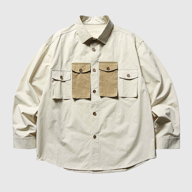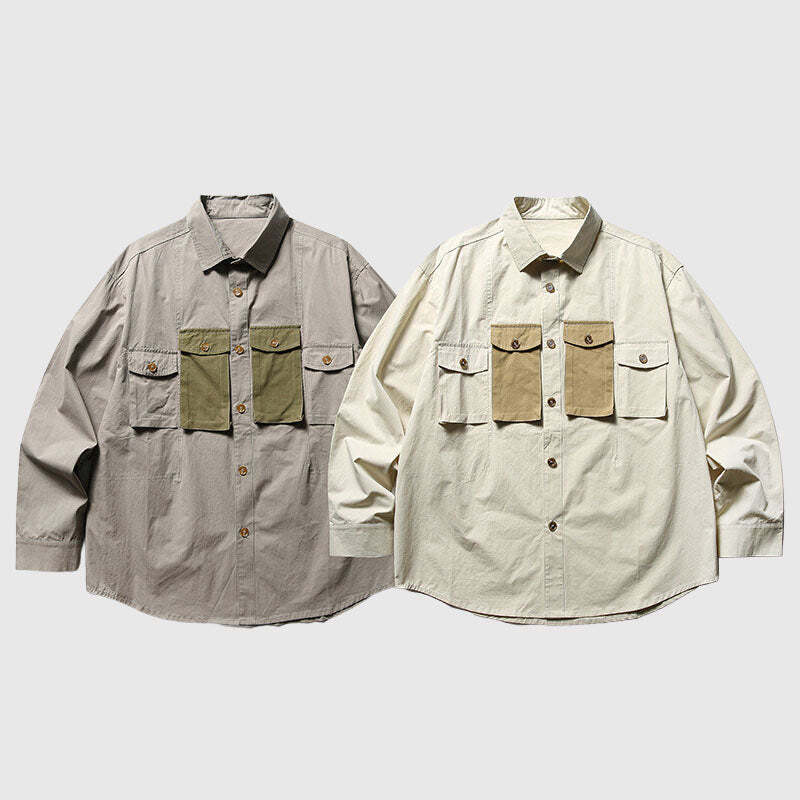 Features: Shirts, lapel, long sleeve, multi-pocket patchwork design, relaxed fit, soft and breathable, unisex, couple outfits.