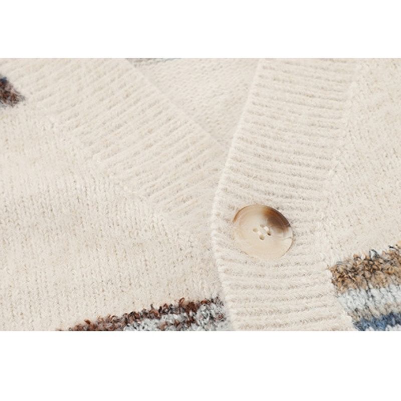 Stay cozy and stylish in this rainbow striped gradient cardigan. Crafted from 40% acrylic for warmth and comfort, this cardigan has a unique rainbow striped gradient detail to give it an eye-catching look. Perfect for any wardrobe.