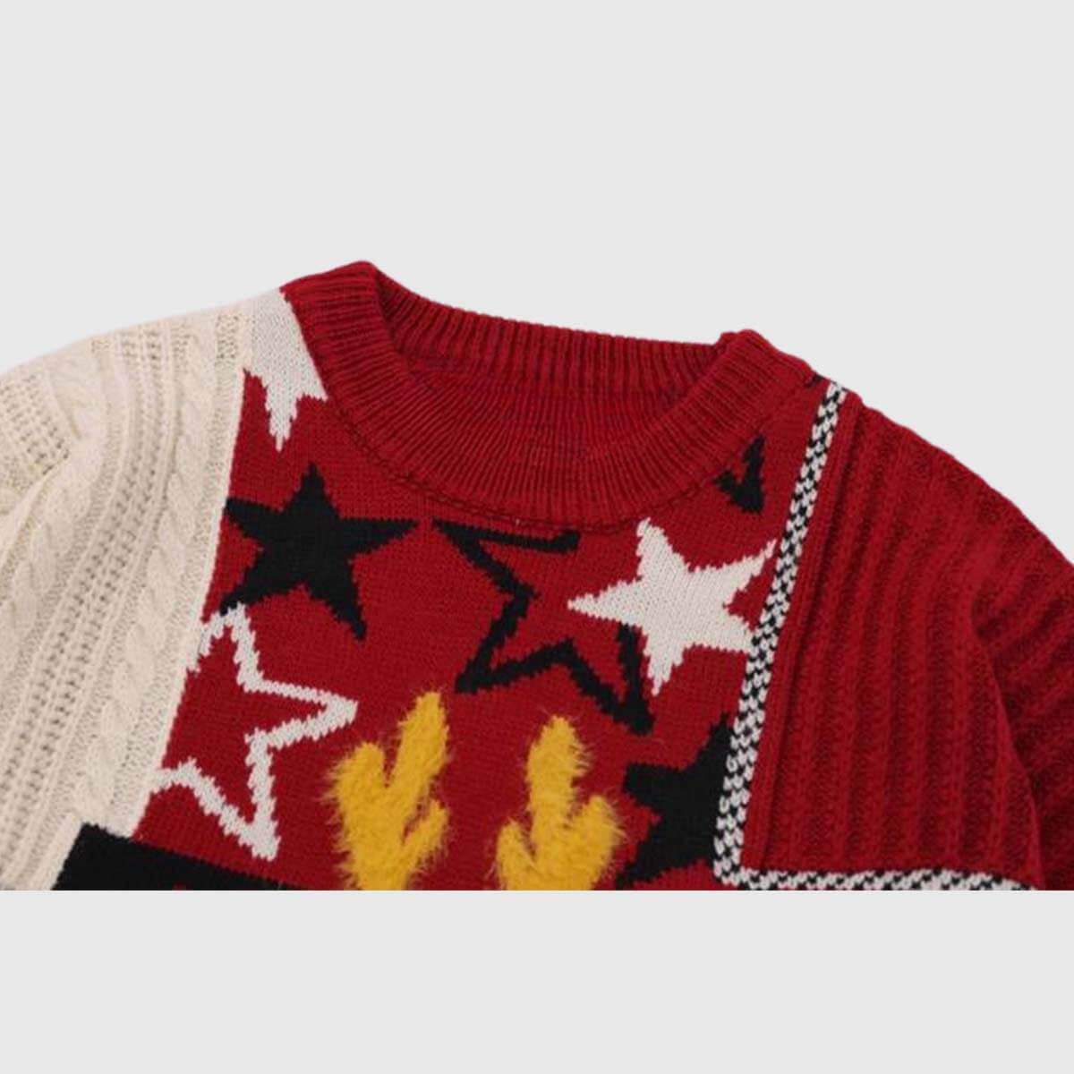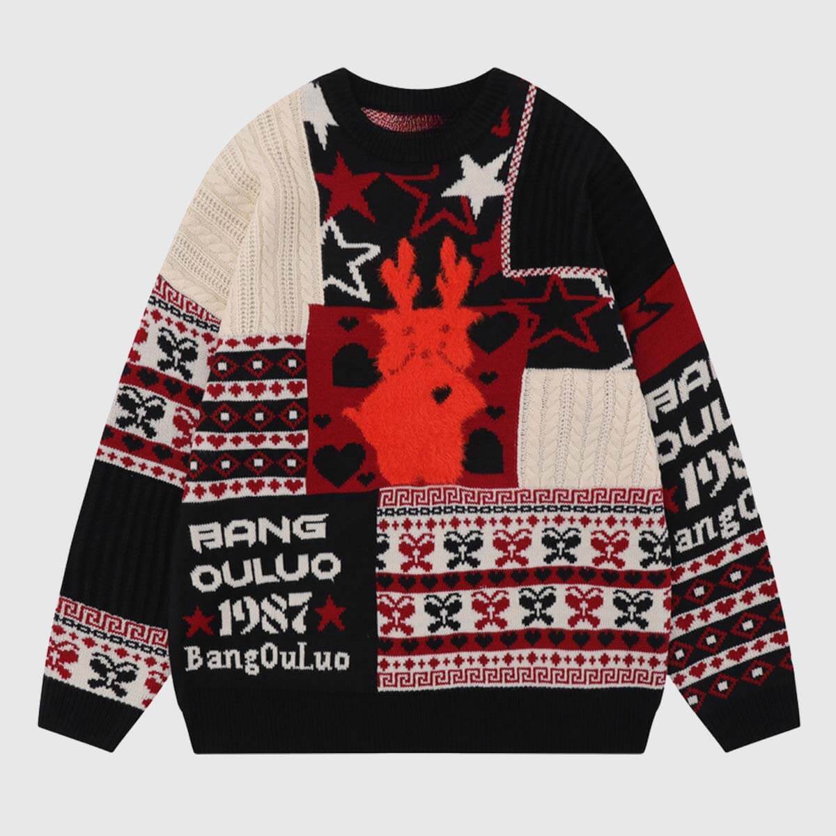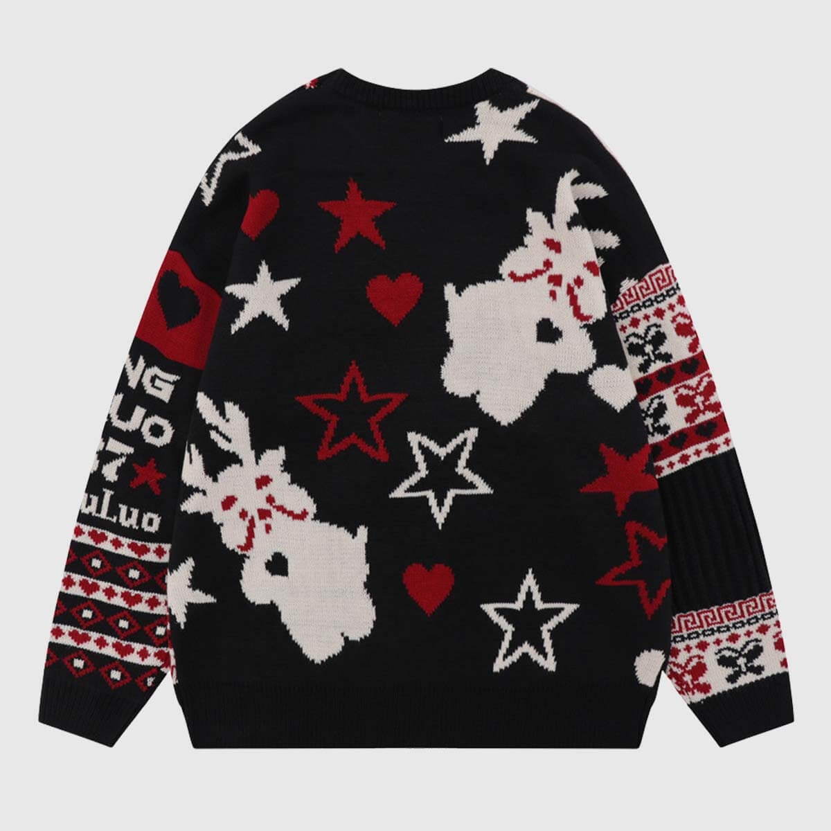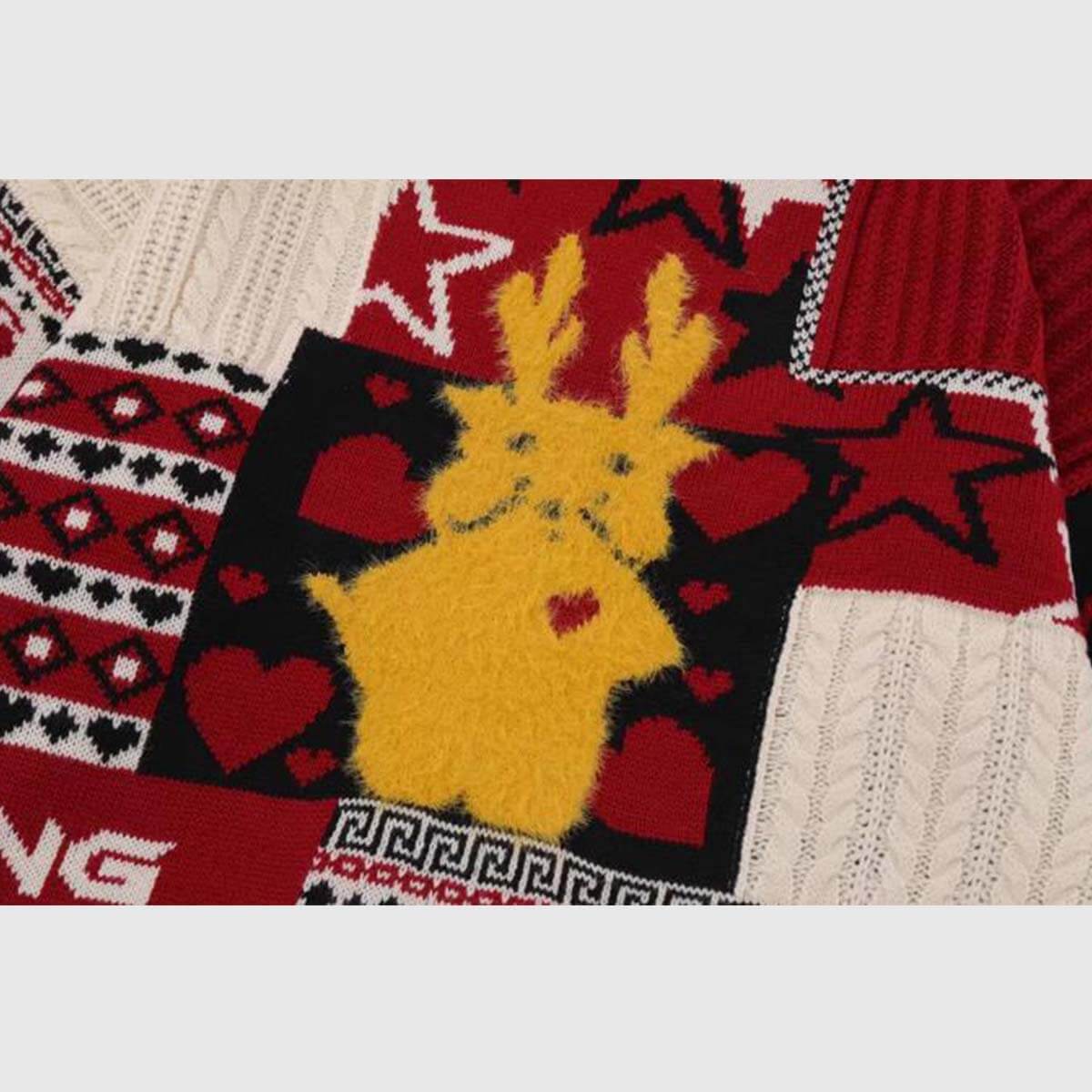 - Combines classic holiday patterns with a prominent reindeer graphic for a playful look.