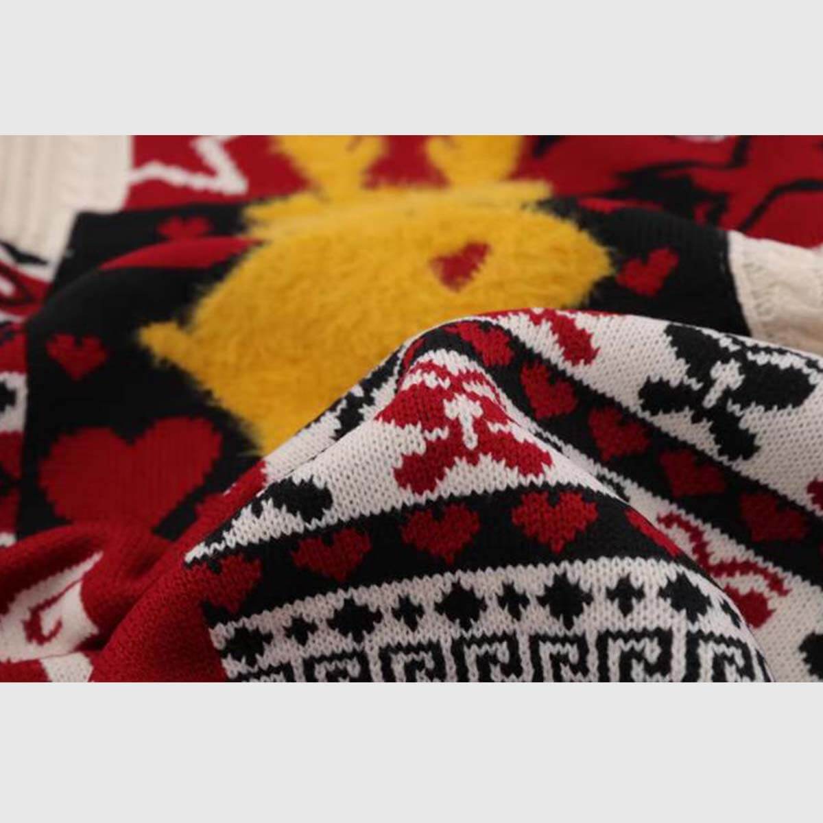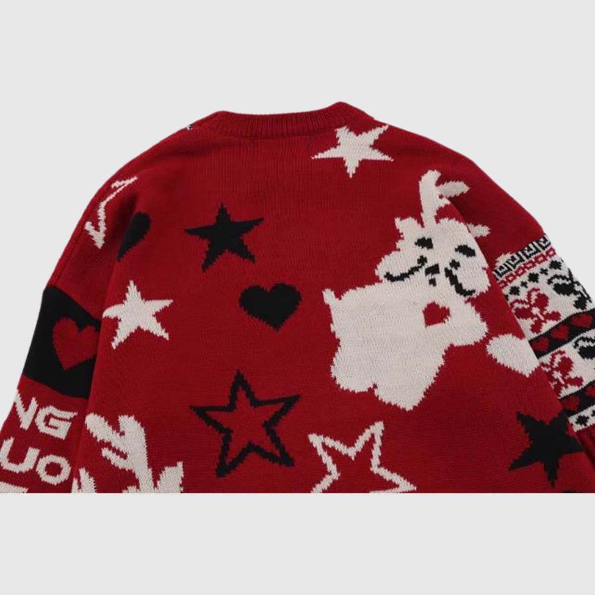 - Bright red, black, and white tones add a festive touch to any outfit.