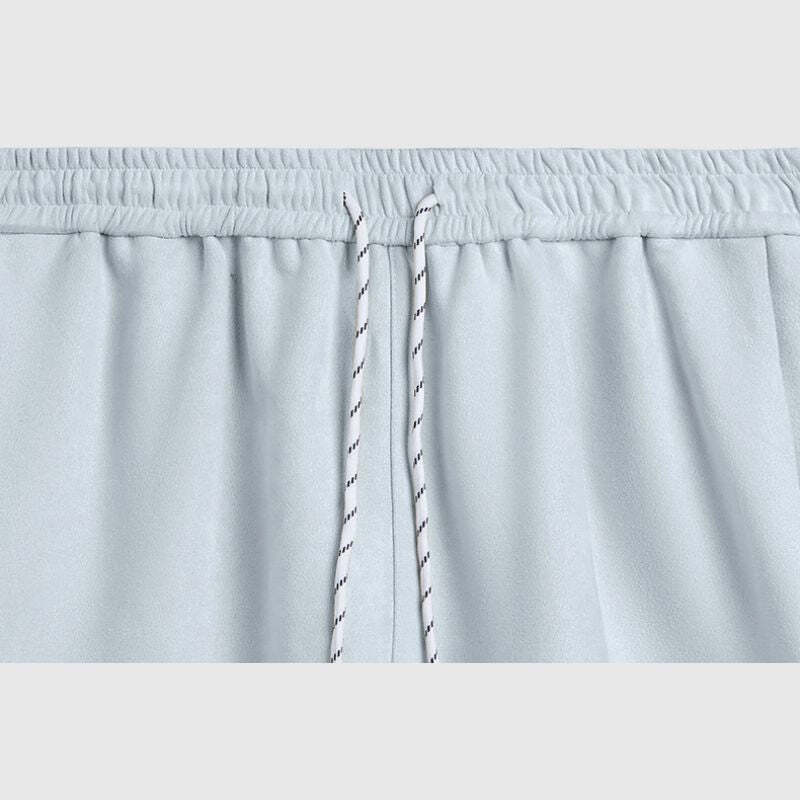 Features: Set, tee, shorts, short sleeves, solid color, drawstring waist, letter embossed design, suede, high waist, wide-leg, racing style, loose.