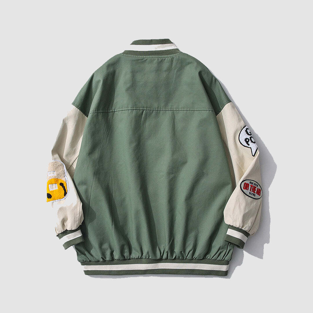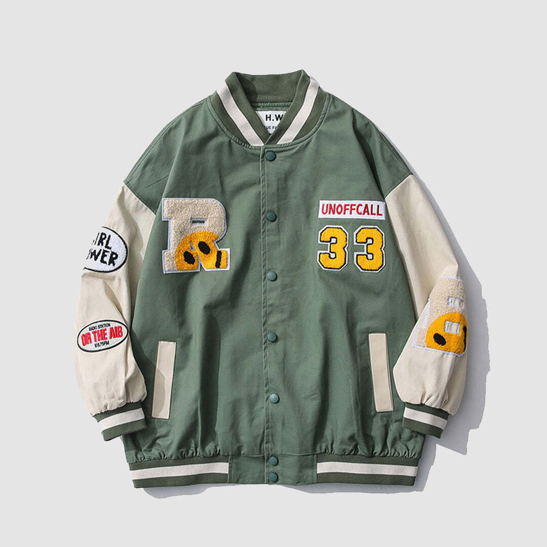 🎯This varsity jacket uses a color-blocking design to give the garment a visual impact. The prints on the jacket are all designed with embroidered patches, some letters and numbers are combined, simple and not messy. For autumn or winter wear.