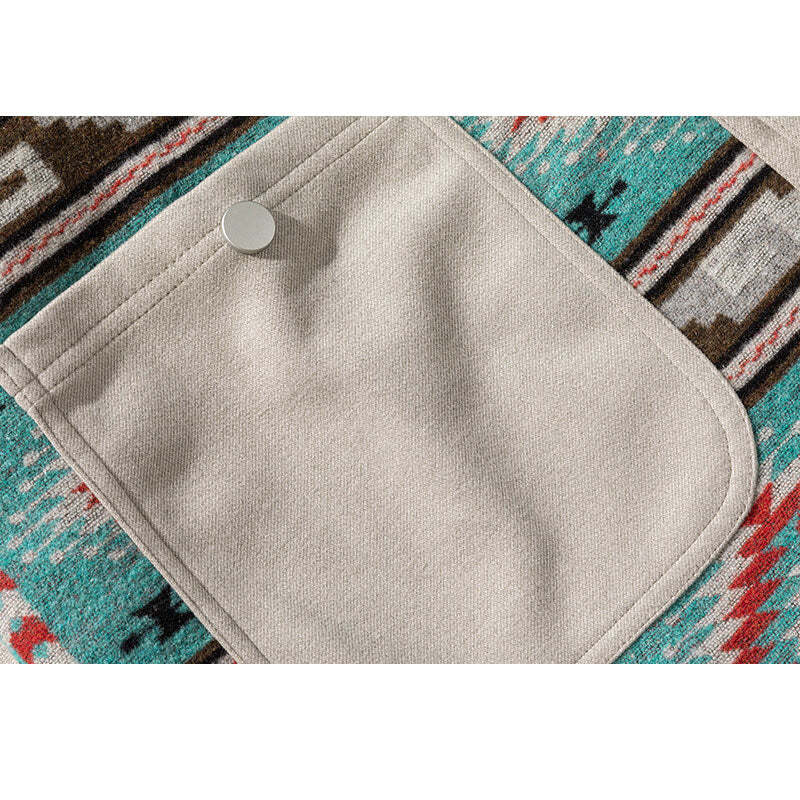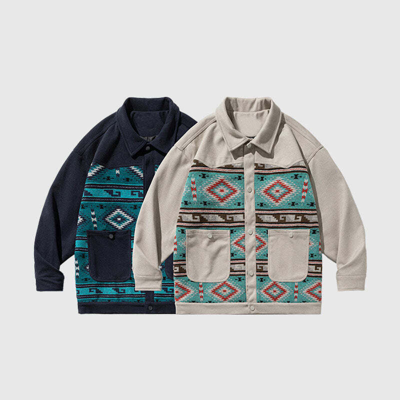 Features: Shirts, lapel, long sleeve, totem pattern patchwork design, relaxed fit, soft and breathable, unisex, couple outfits.