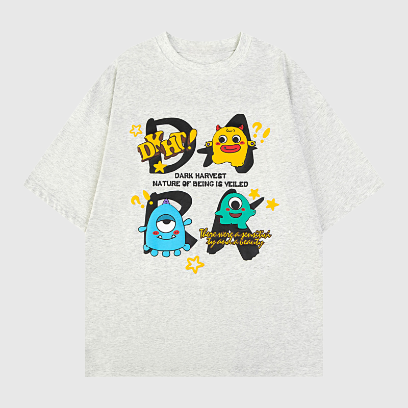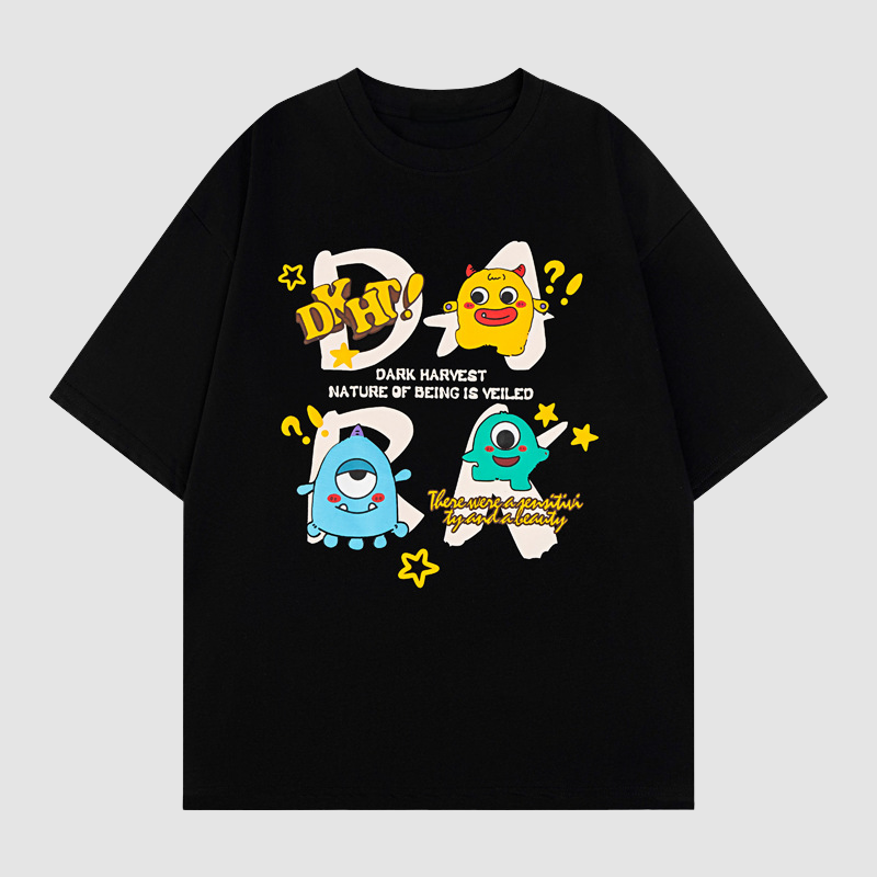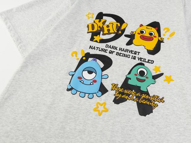 Features: Tee, crew neck, short sleeve, cartoon print design, unisex, relaxed fit, oversized, couple outfits.