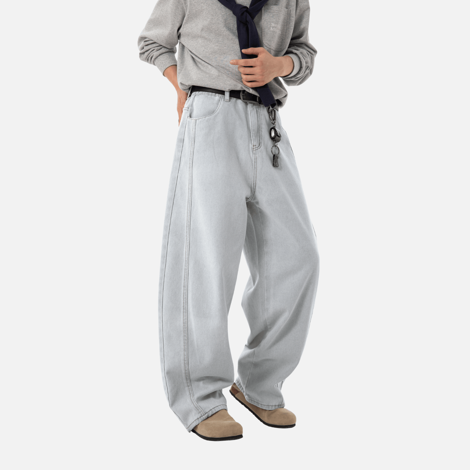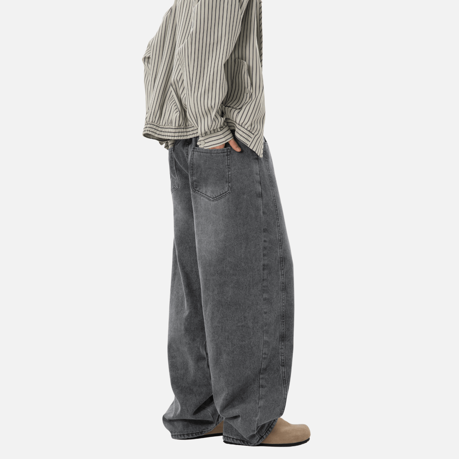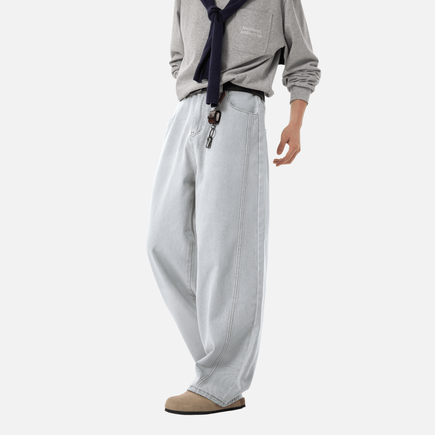 - Loose straight-leg fit