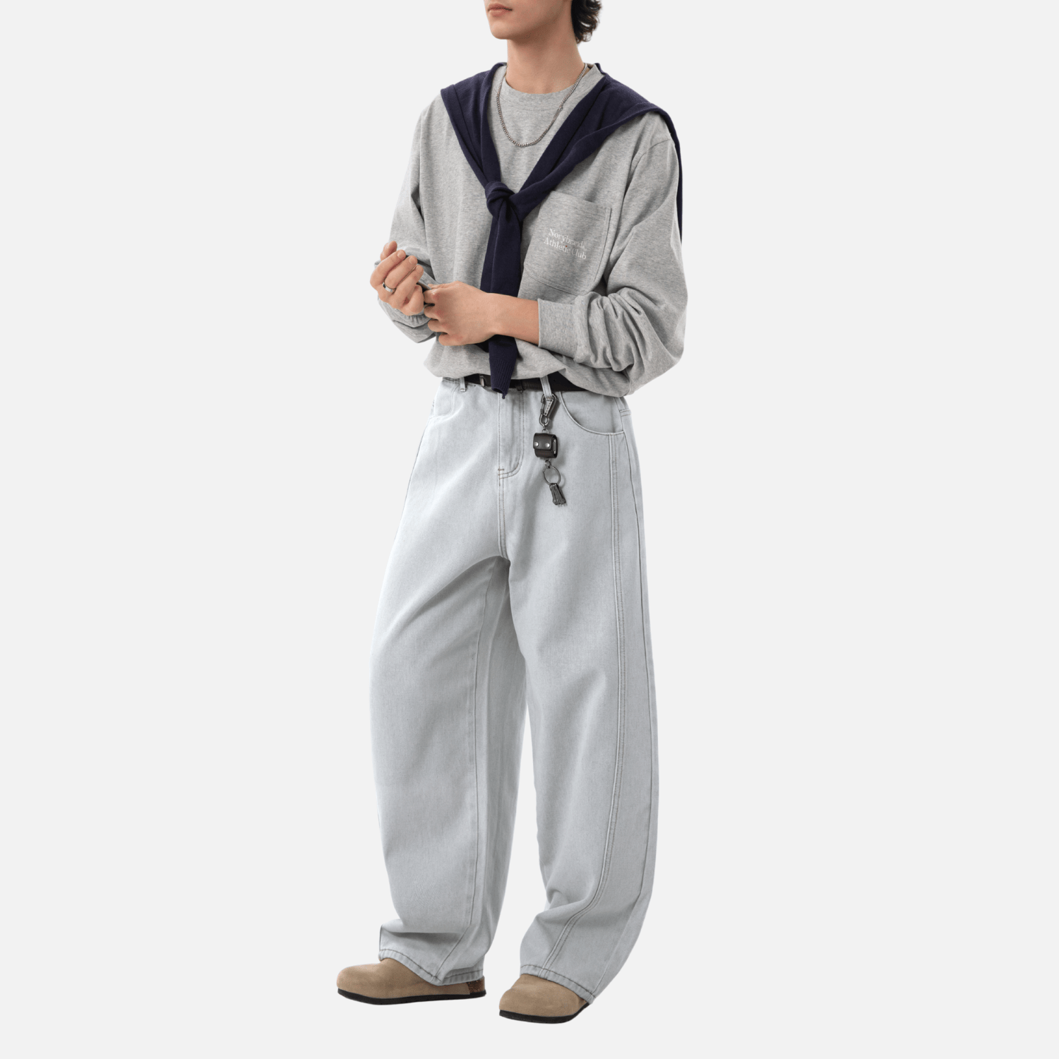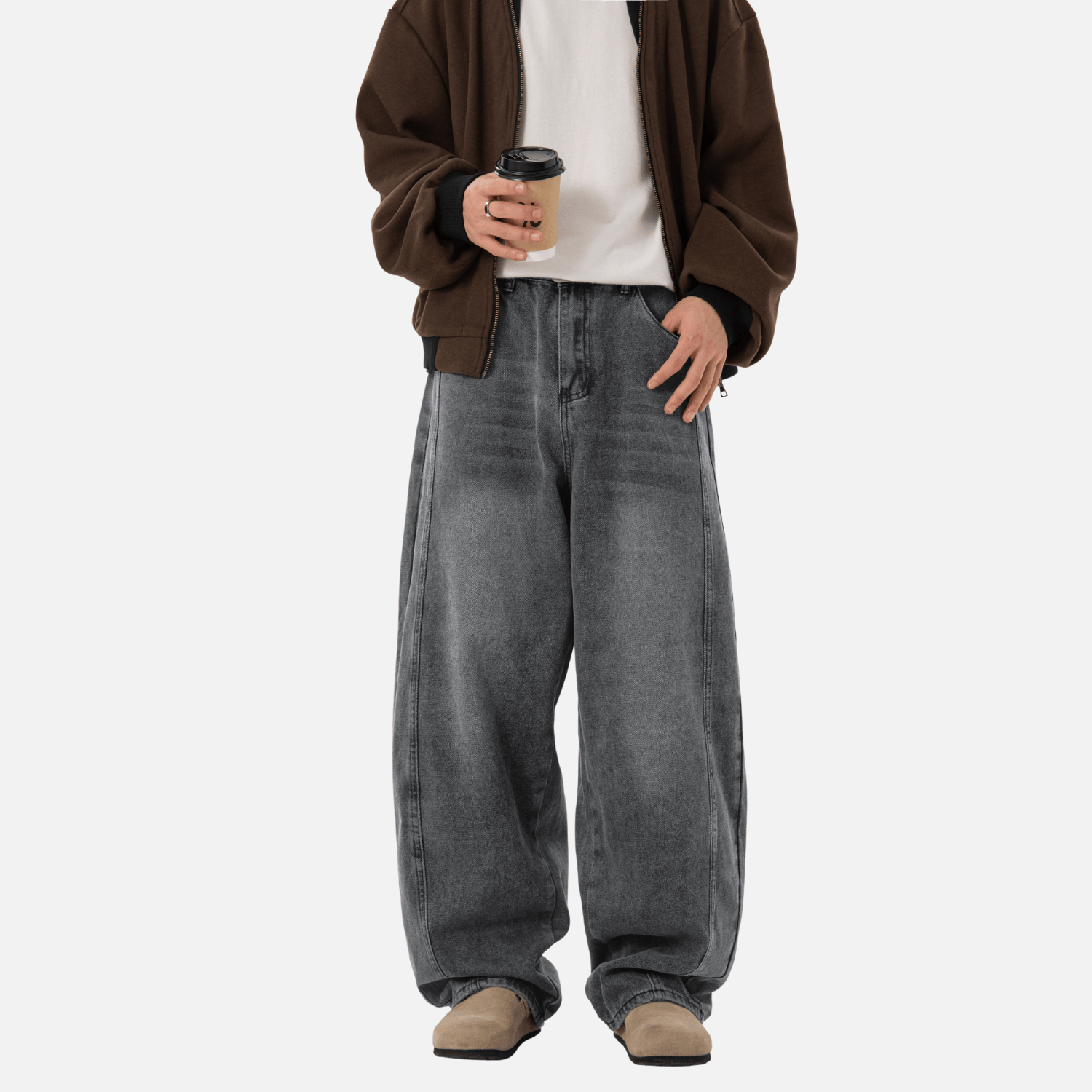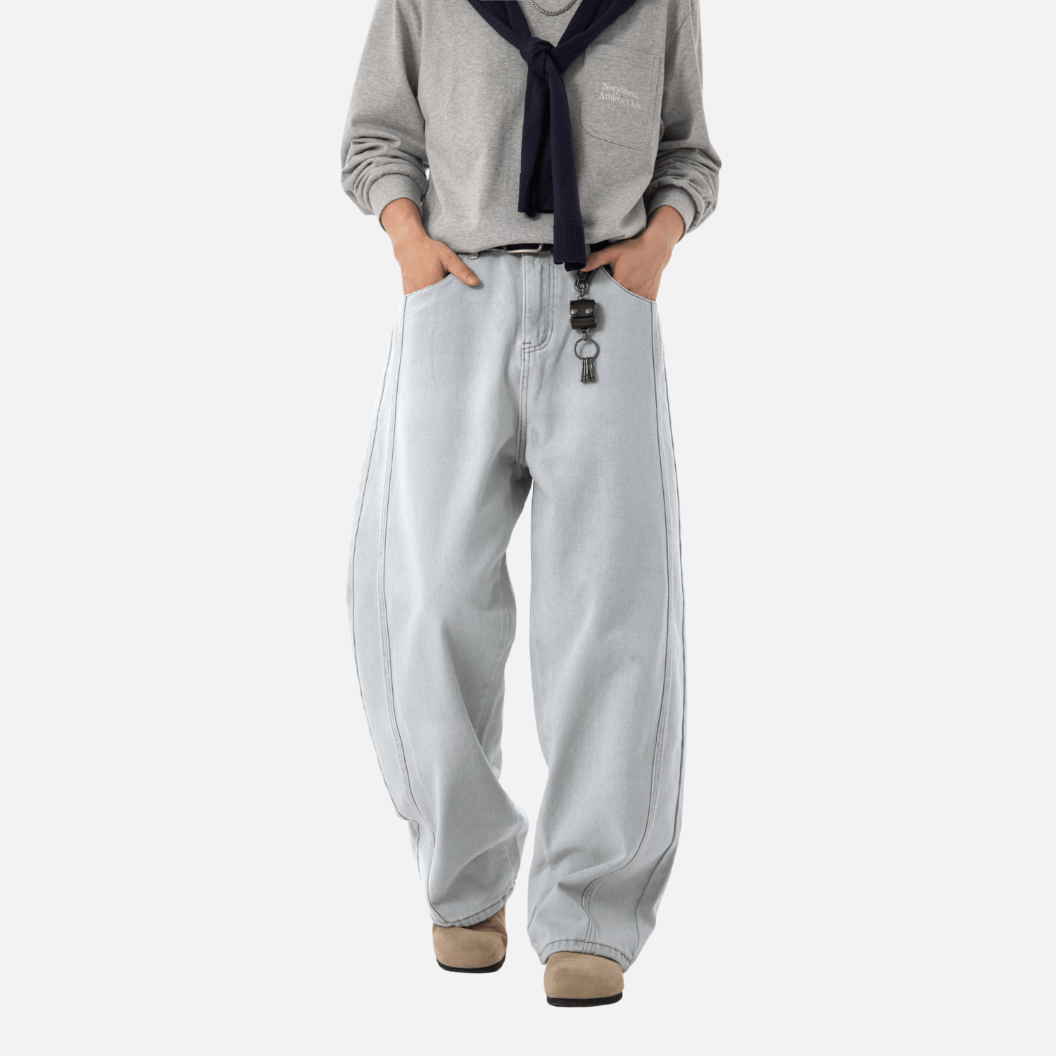 - Loose straight-leg fit