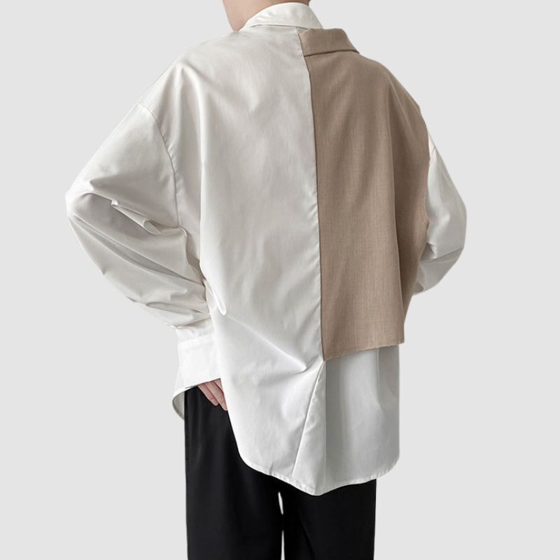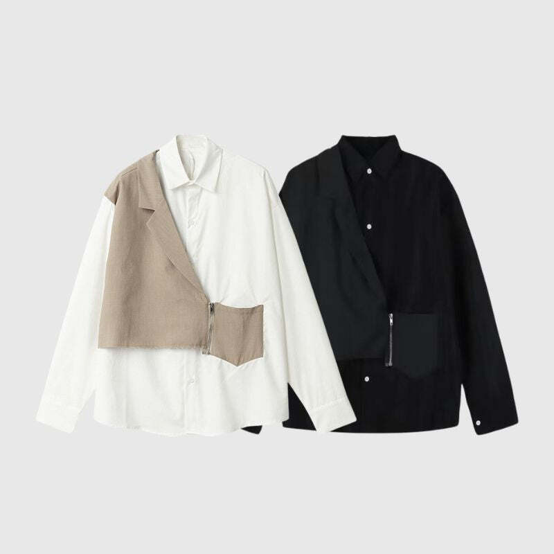 Features: Shirts, lapel, long sleeve, color contrast, zipper vest patchwork, relaxed fit, soft and breathable, unisex, couple outfits.