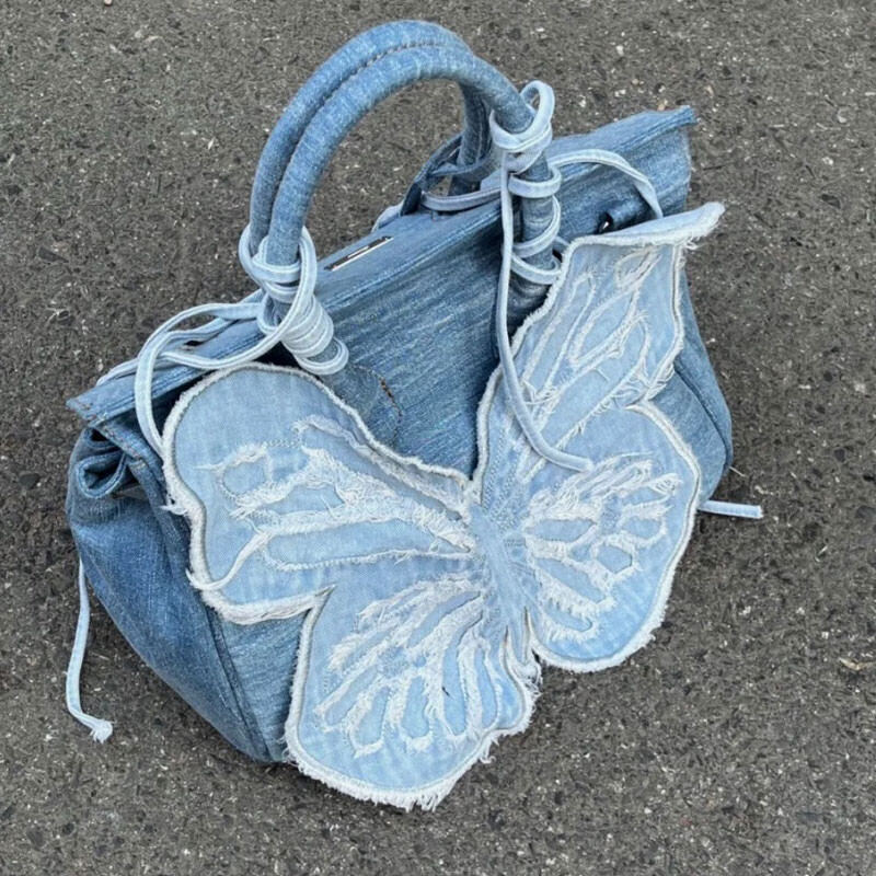 Plonge dans l’univers Y2K avec Ariella, un sac papillon en denim qui mélange esprit vintage et modernité. Sa silhouette de papillon et sa matière jean apportent une touche audacieuse à tes tenues, tandis que son format pratique te permet d’emporter l’essentiel avec style.