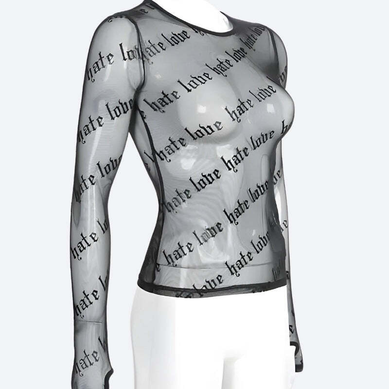 Be the first to review “Style Core Aesthetics, New Style Trends – Baddie Love Hate Sheer Mesh Top” Cancel reply
