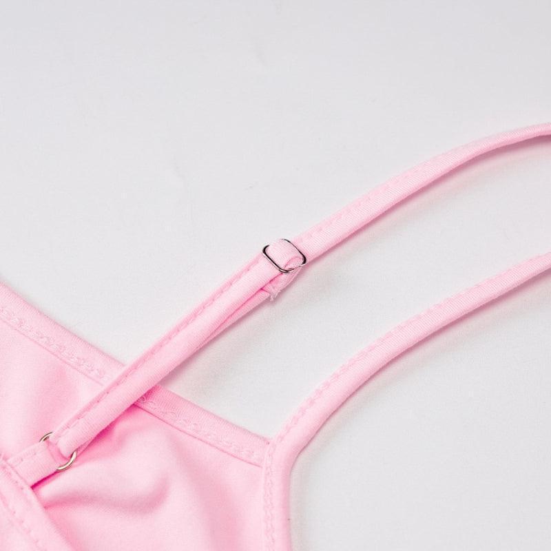 Infused with the playful Barbiecore aesthetic, this slim-fitting, soft pink ‘Baby’ mini dress is a showstopper. The front features ‘Baby’ embroidered in shimmering rhinestones. The square neckline and slim adjustable straps lend a delicate feminine touch to the polyester-spandex blend dress. Sleeveless and snug, this dress is ideal for those who want to stand out while staying chic.