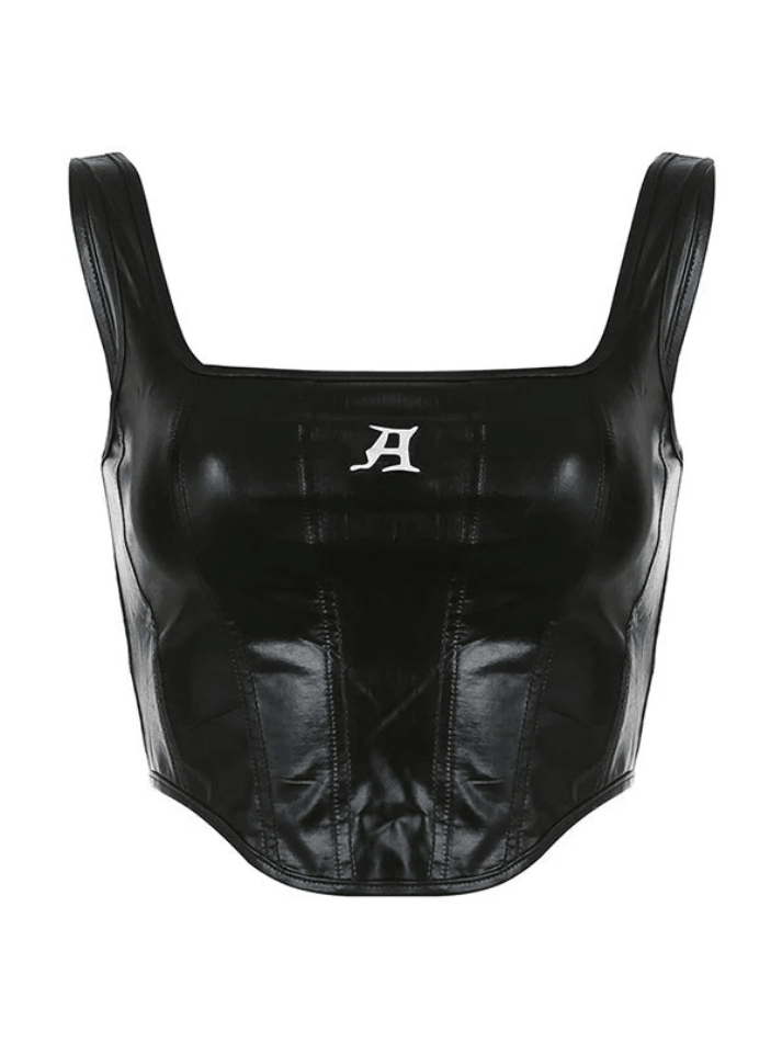 Style Core Aesthetics, New Style Trends – Black Pu Leather Cropped Tank Top