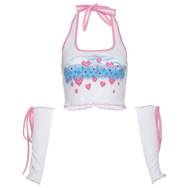 This soft girl aesthetic top has a cute print and comes with matching gloves