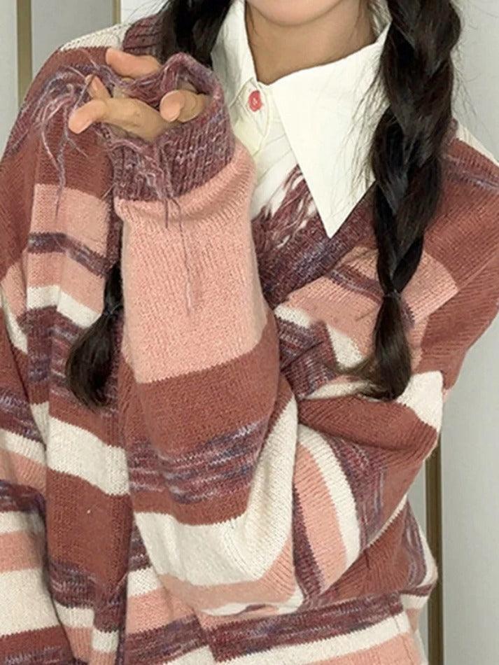Style Core Aesthetics, New Style Trends – Cardigan ample à col en V et rayures à pompons