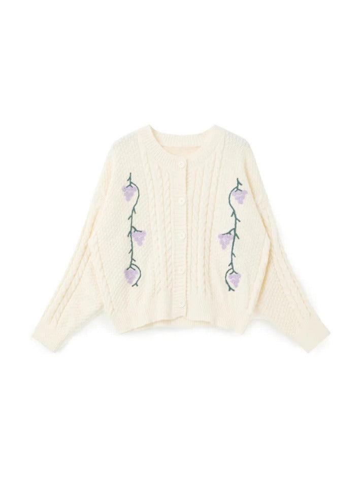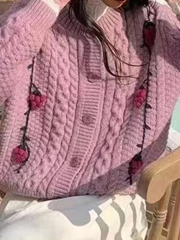 Design unique : adoptez la douceur avec le motif tricoté au crochet de raisin sur ce cardigan, ajoutant une touche vintage à votre look.