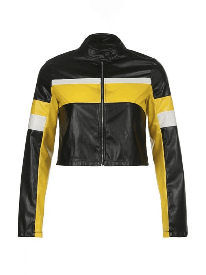 Be the first to review “Style Core Aesthetics, New Style Trends – Color Block Cropped Pu Leather Moto Jacket” Cancel reply