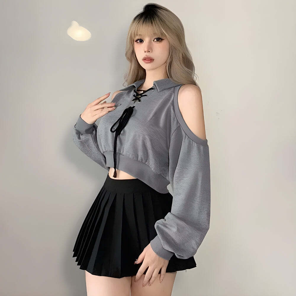 Be the first to review “Style Core Aesthetics, New Style Trends – Cut Out Lace Up Cropped Sweatshirt” Cancel reply