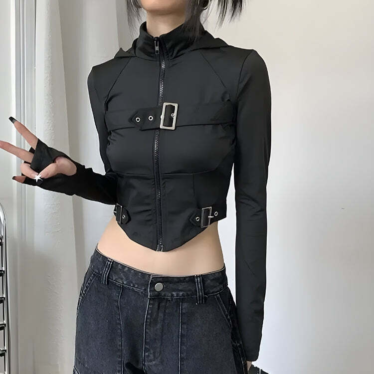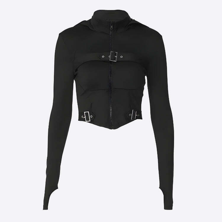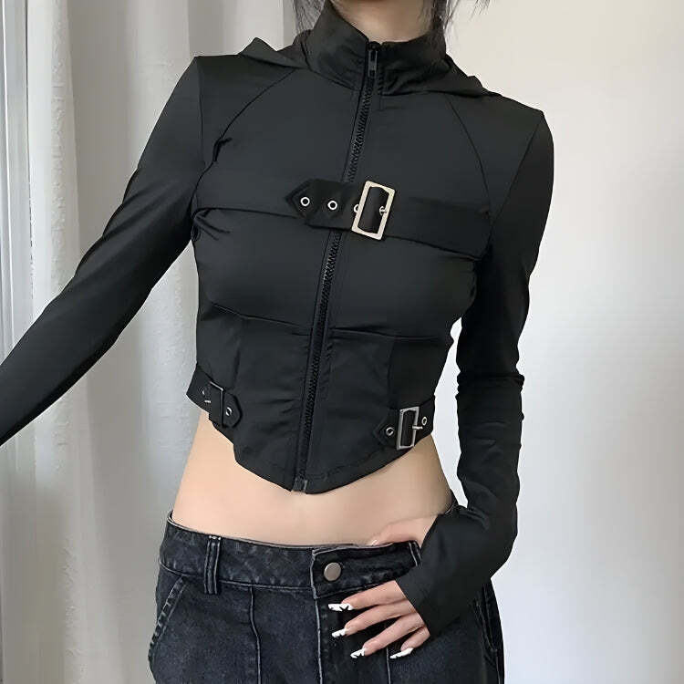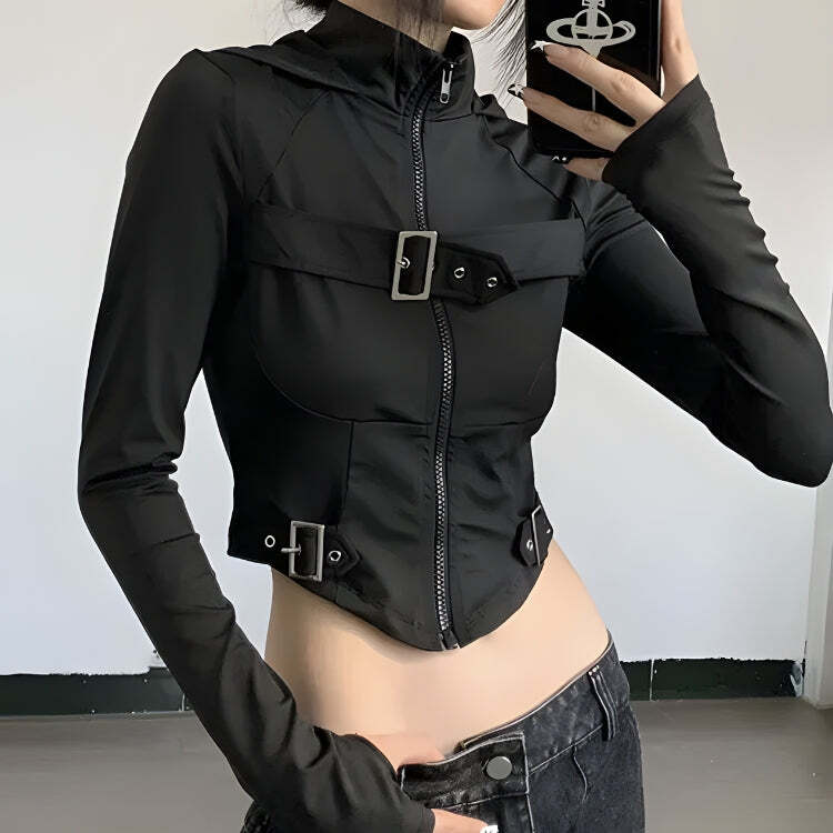 Be the first to review “Style Core Aesthetics, New Style Trends – Cyberpunk Belted Zip-Up Crop Jacket” Cancel reply