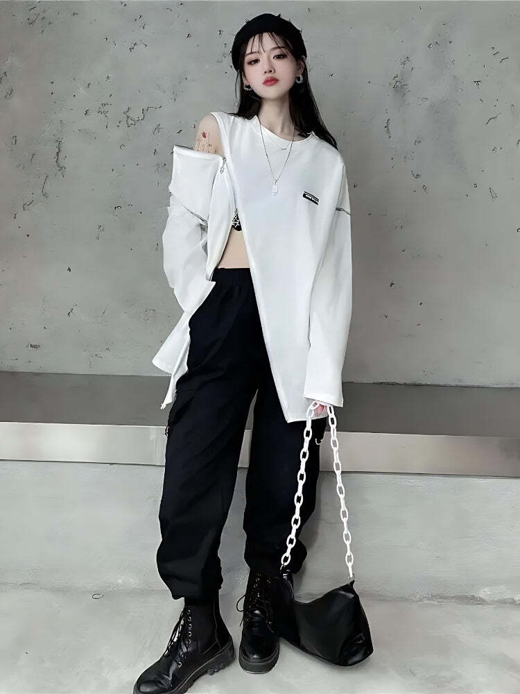 Be the first to review “Style Core Aesthetics, New Style Trends – Cyberpunk Cross Zip-Up Top” Cancel reply