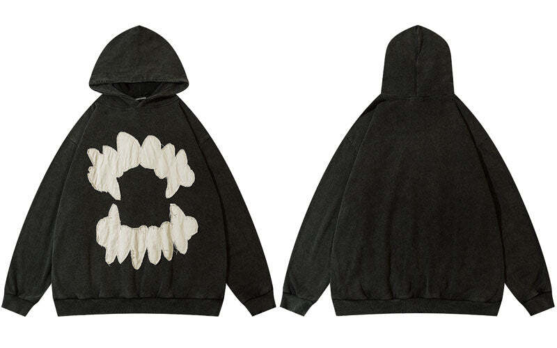 Devil Teeth Embroidery Hoodie by Mauv Studio
