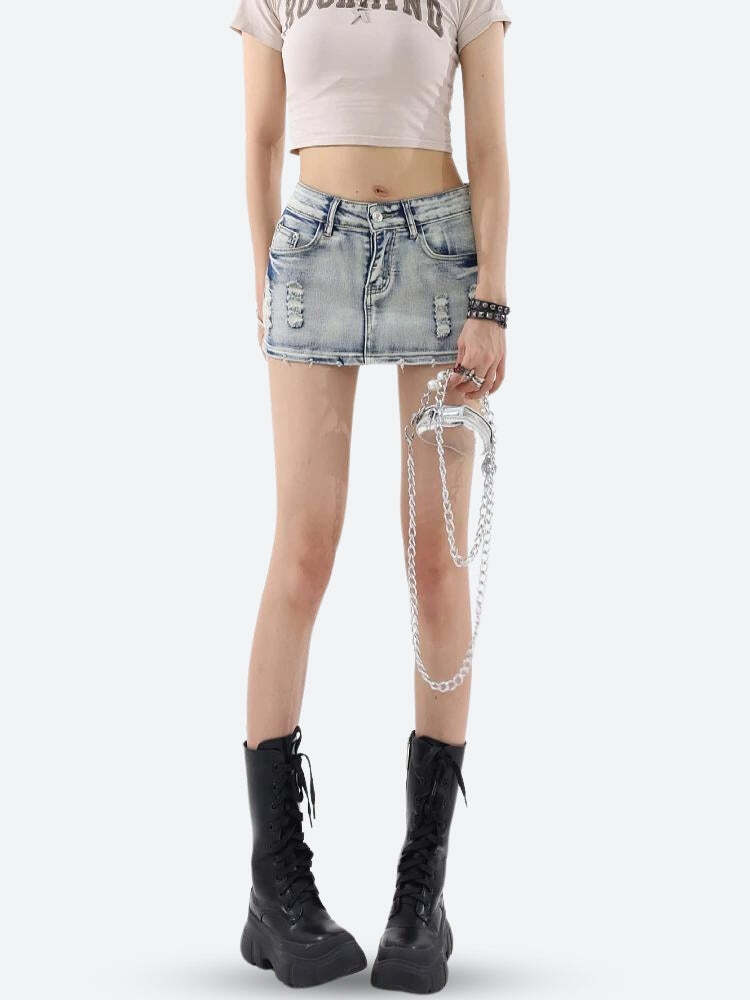 Be the first to review “Style Core Aesthetics, New Style Trends – Distressed Low Rise Mini Skirt” Cancel reply