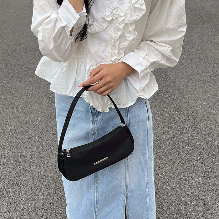 Avec Elina, adopte l’esprit Y2K sans effort ! Cette mini baguette en nylon allie légèreté et style rétro pour compléter tes looks quotidiens.