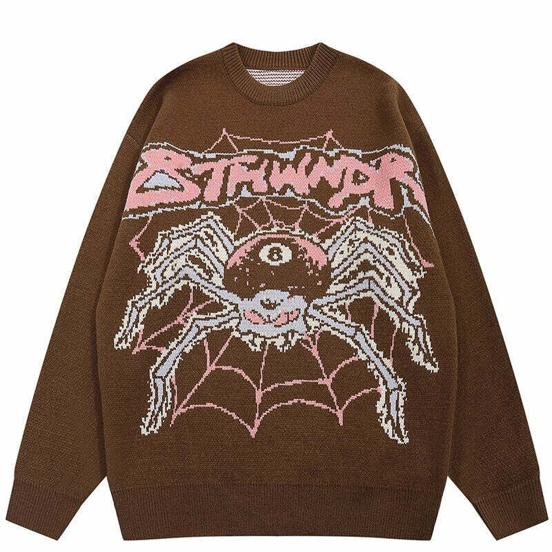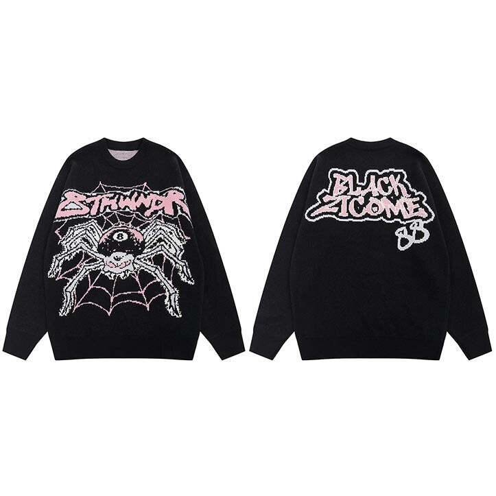 Style Core Aesthetics, New Style Trends – Evil Spider Graphic Knit Cotton Sweater