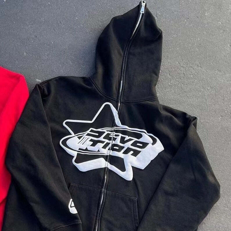 Ce Full zip noir Y2K est un must-have pour tous les amateurs de Streetwear. Un coloris noir riche est complété par un motif graphitti avec une étoile en arrière plan pour un look qui ne passera pas inaperçu. Sa fermeture à glissière complète est pratique et rassurante, tandis que le tissu durable vous gardera à la mode et au chaud pendant des années. Vous vous démarquerez de la foule avec le black full zip hoodie qui s’adapte à votre dressing.