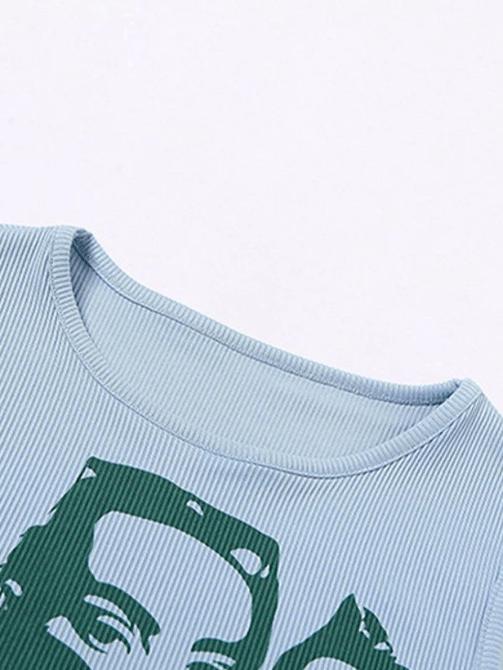 Embrace the 90s vibe with this retro-inspired ribbed crop top. The racerback design and girl girl screen print add a touch of vintage charm to your outfit. Perfect for casual, street, or punk-inspired looks.