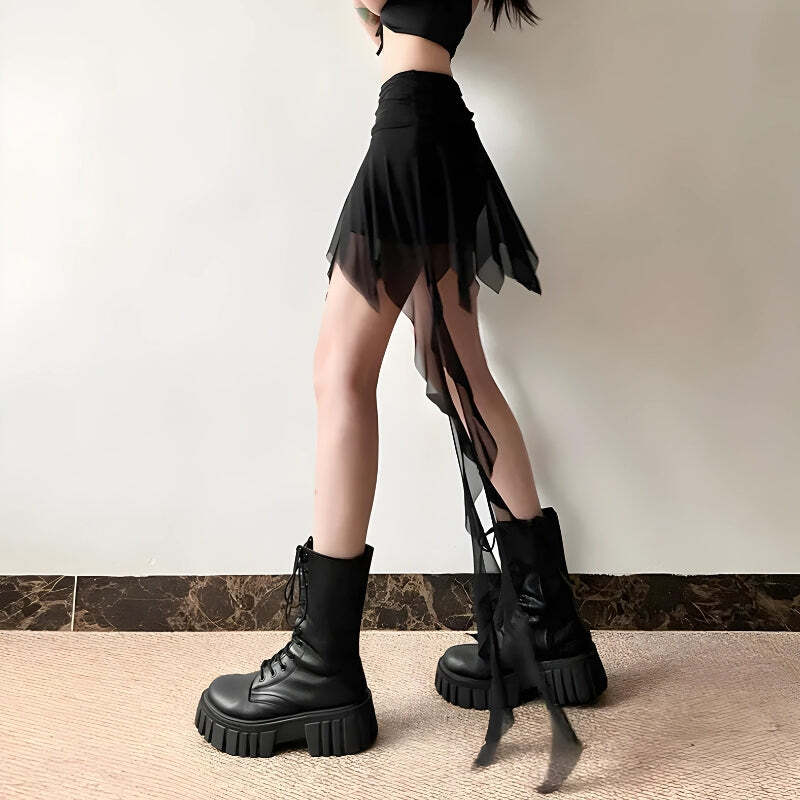 Featuring a unique high-low design and flowing mesh layers, this skirt adds a dramatic flair to any outfit. The lightweight fabric and elastic waistband ensure a comfortable fit. Perfect for concerts, festivals, or making a bold statement in everyday wear, pair it with your favorite crop top and boots for an effortlessly edgy look.