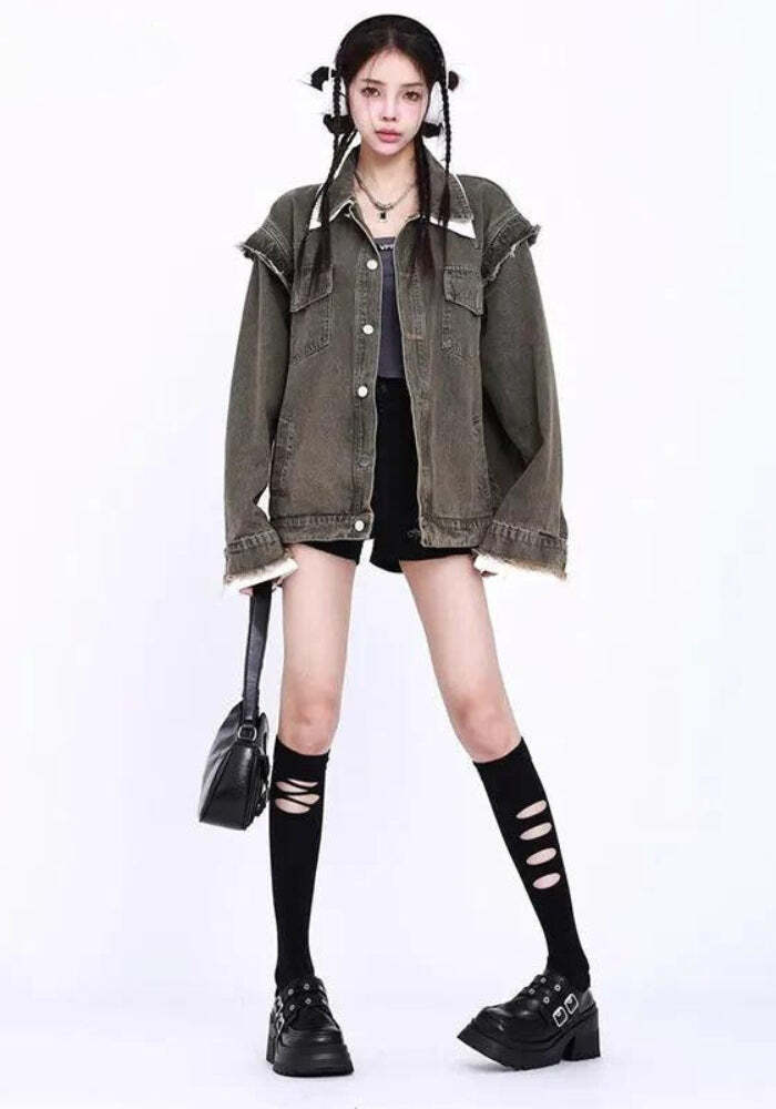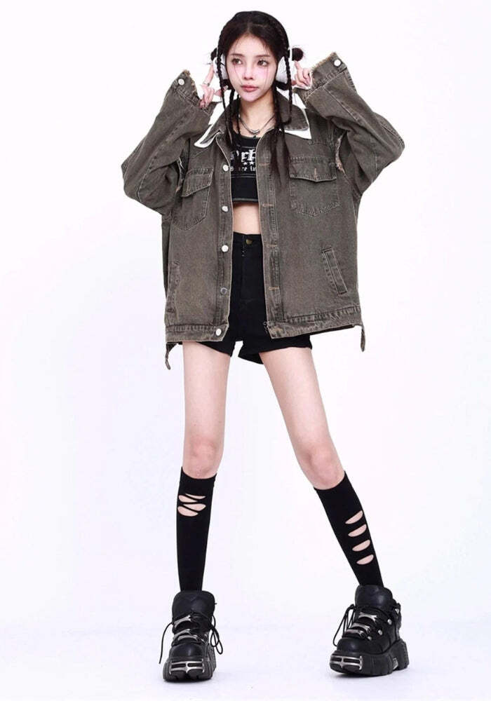 Be the first to review “Style Core Aesthetics, New Style Trends – Grunge Button Up Oversized Denim Jacket” Cancel reply