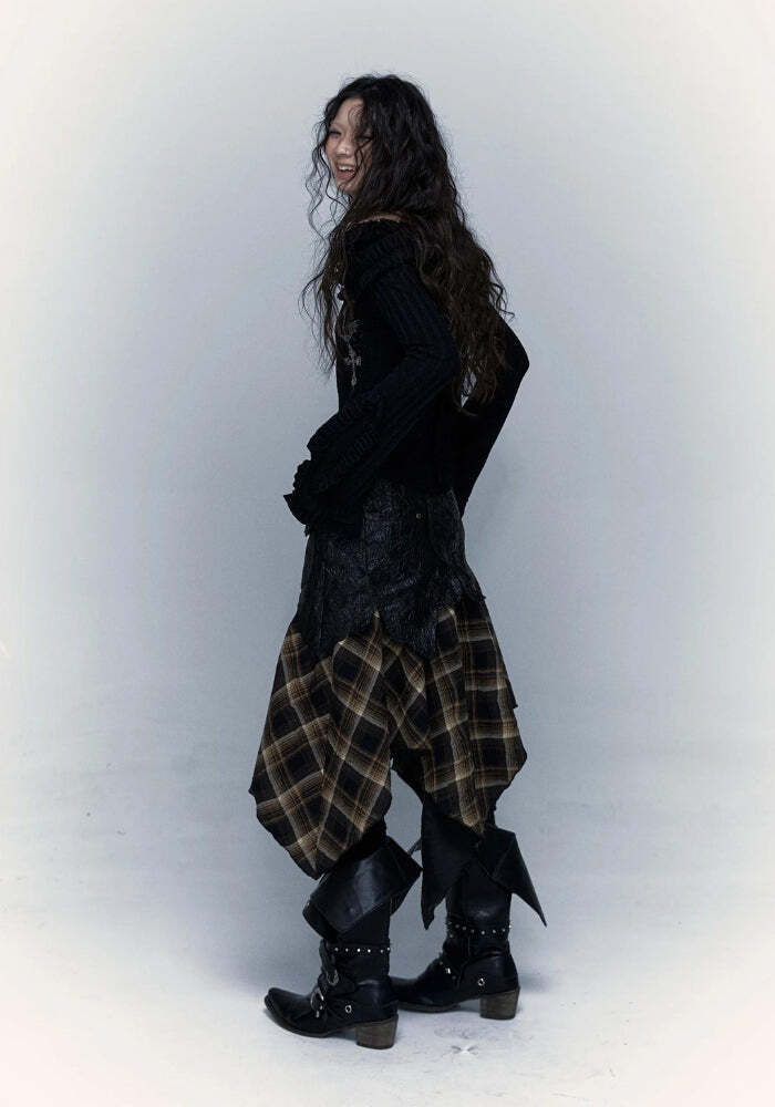 Be the first to review “Style Core Aesthetics, New Style Trends – Grunge Faux Leather Plaid Midi Skirt” Cancel reply