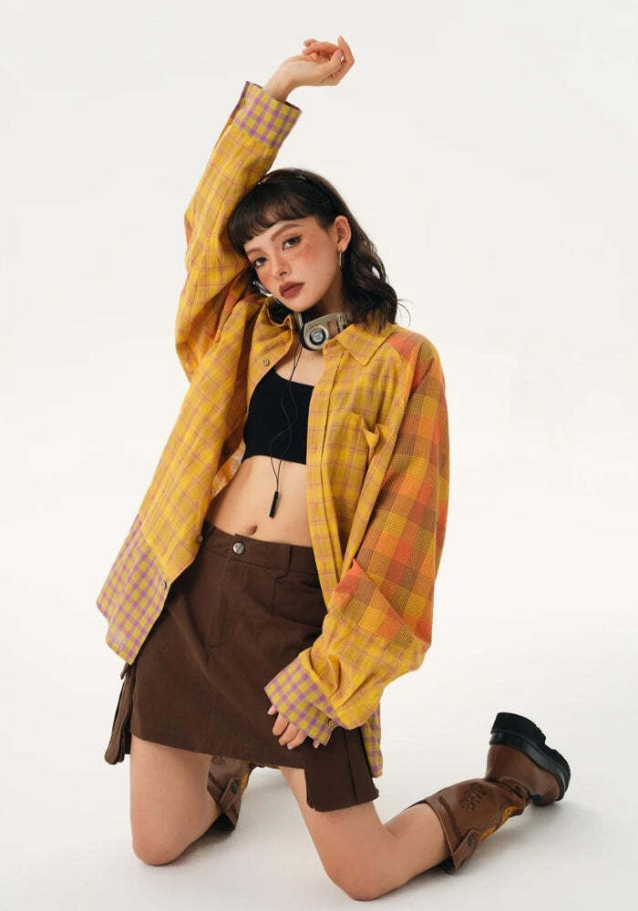 Be the first to review “Style Core Aesthetics, New Style Trends – Grunge Multi Pattern Plaid Shirt” Cancel reply